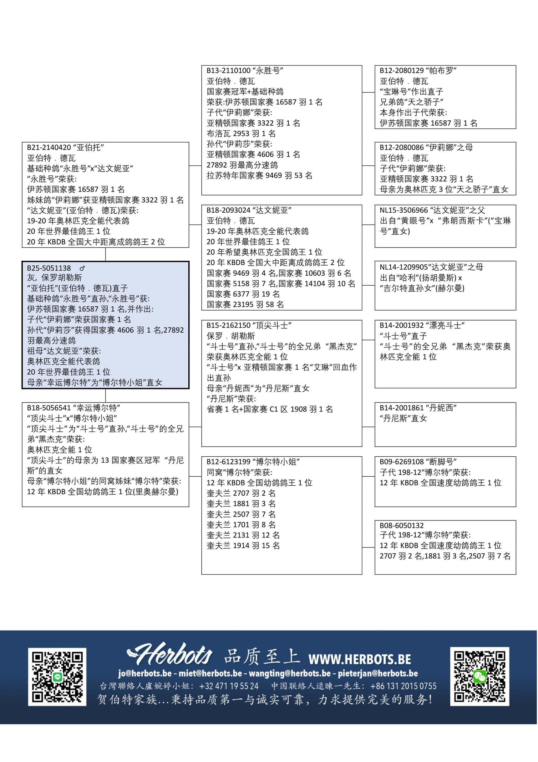 头号基础种鸽 –子孙两代皆为国家赛冠军