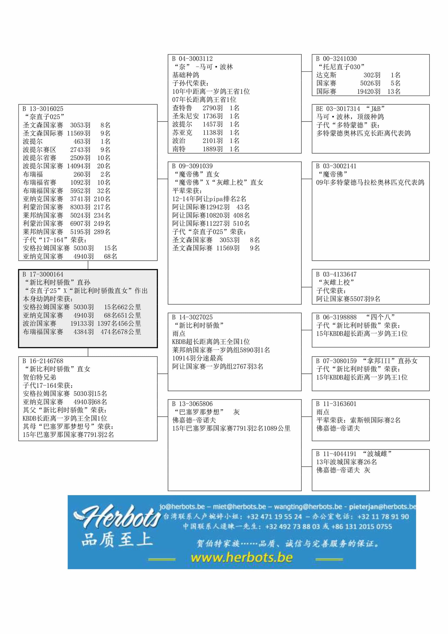 “新比利时骄傲”(KBDB马拉松鸽王全国1位)直孙