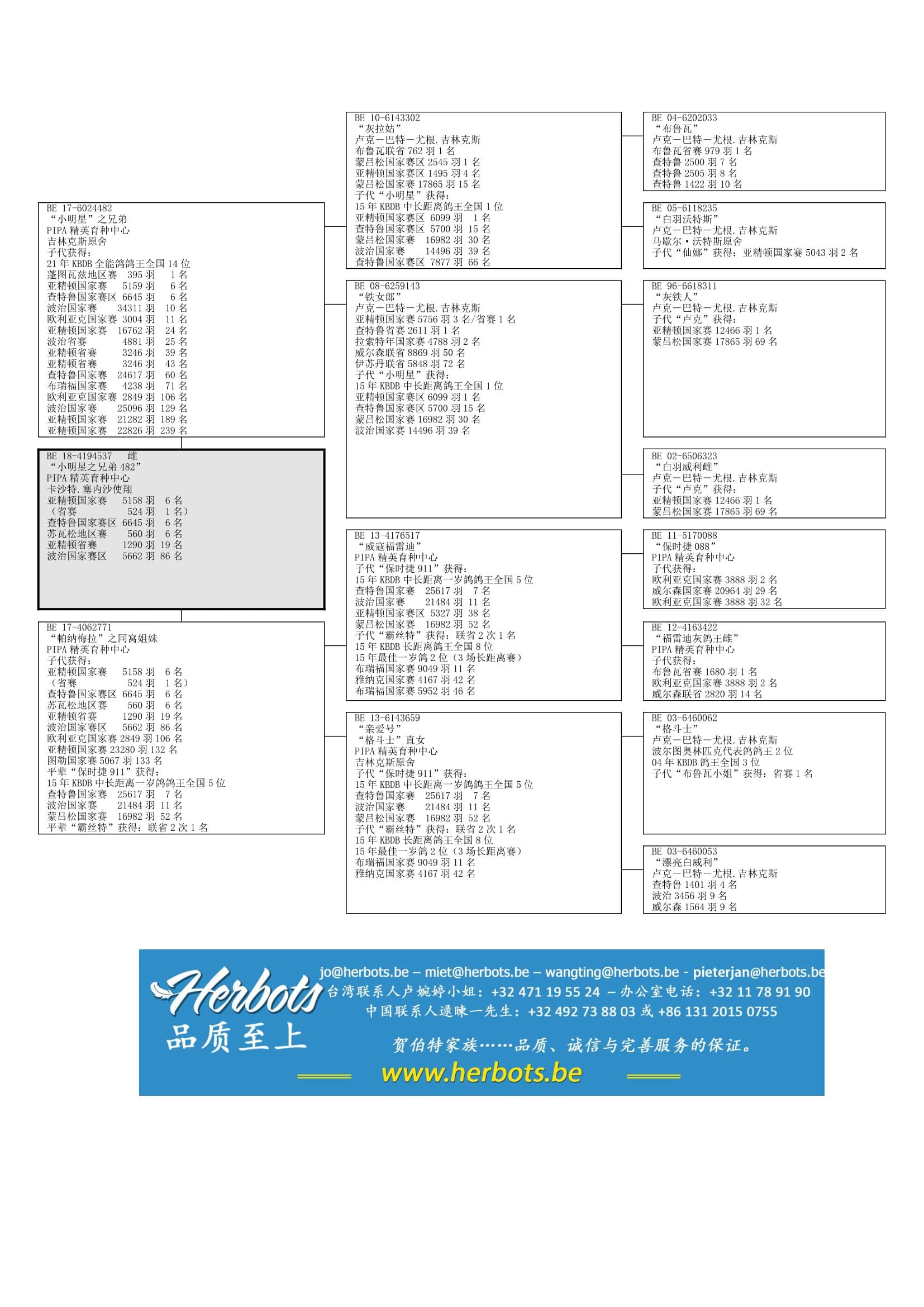 国家赛7次1名以及几羽各个级别赛事的顶级冠军赛鸽