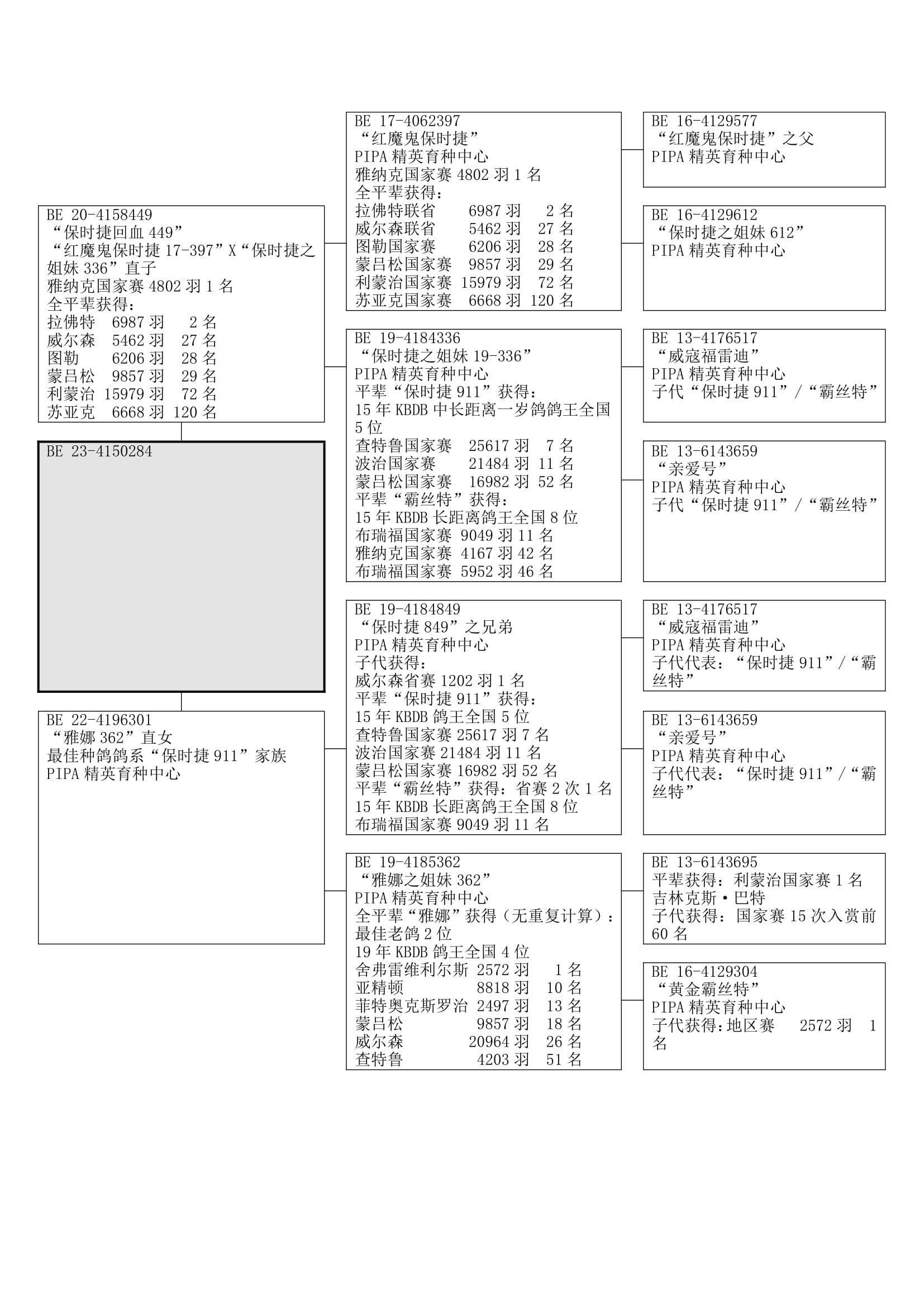 全平辈基础种鸽“保时捷 911” B14-2230911荣获: