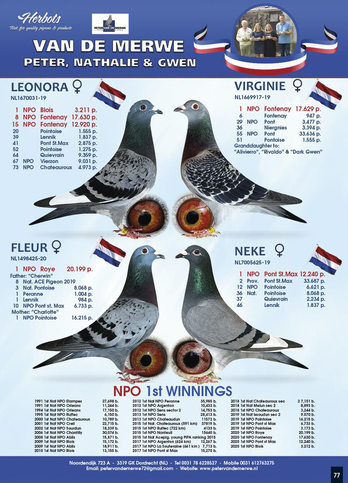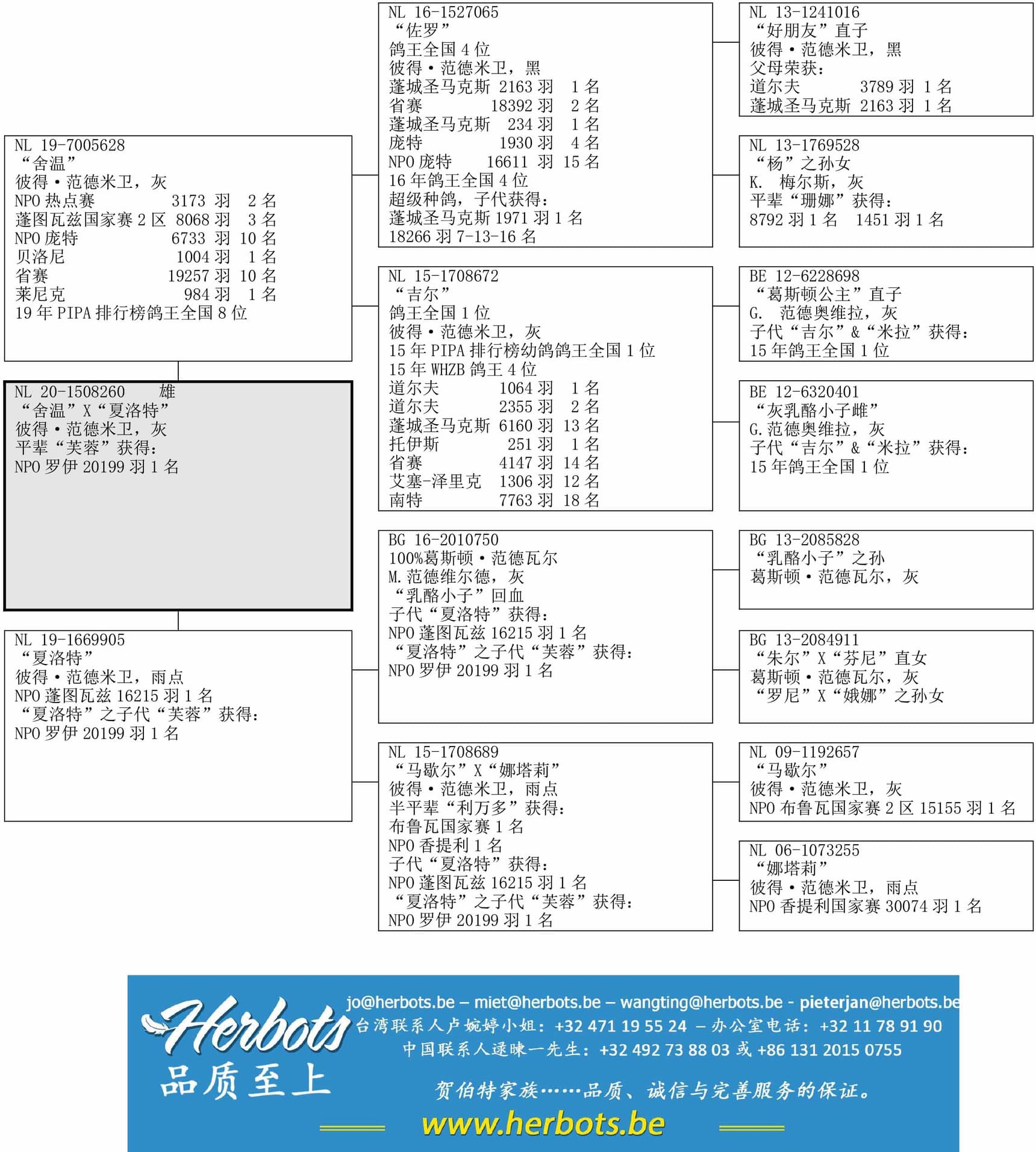 “NL15-1708689” 是“马歇尔”(NPO布鲁瓦13156羽1名)X“娜塔莉”(NPO香提利30074羽1名)作育直女