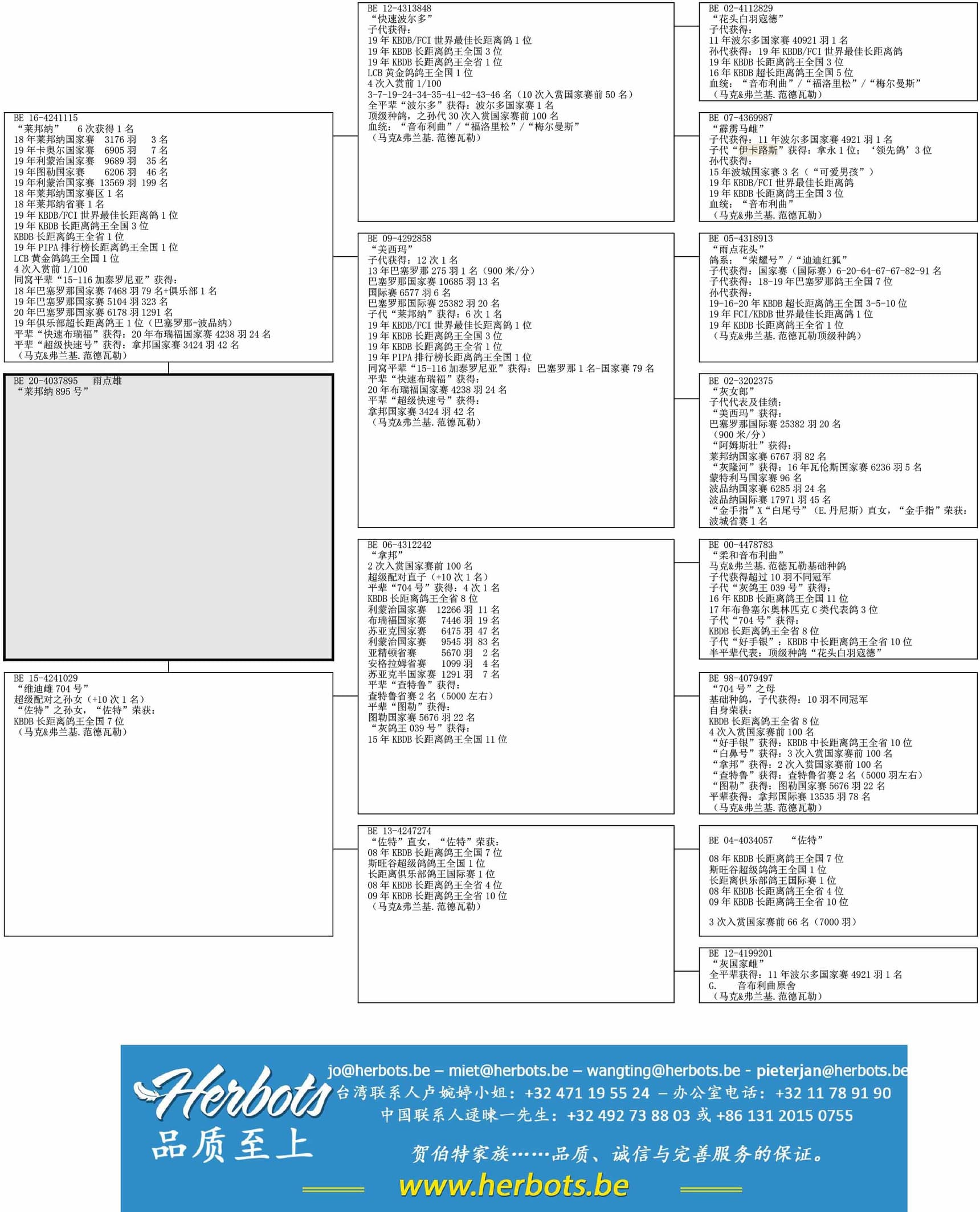 冠军鸽“莱邦纳”直子,“莱邦纳”荣获:6次1名