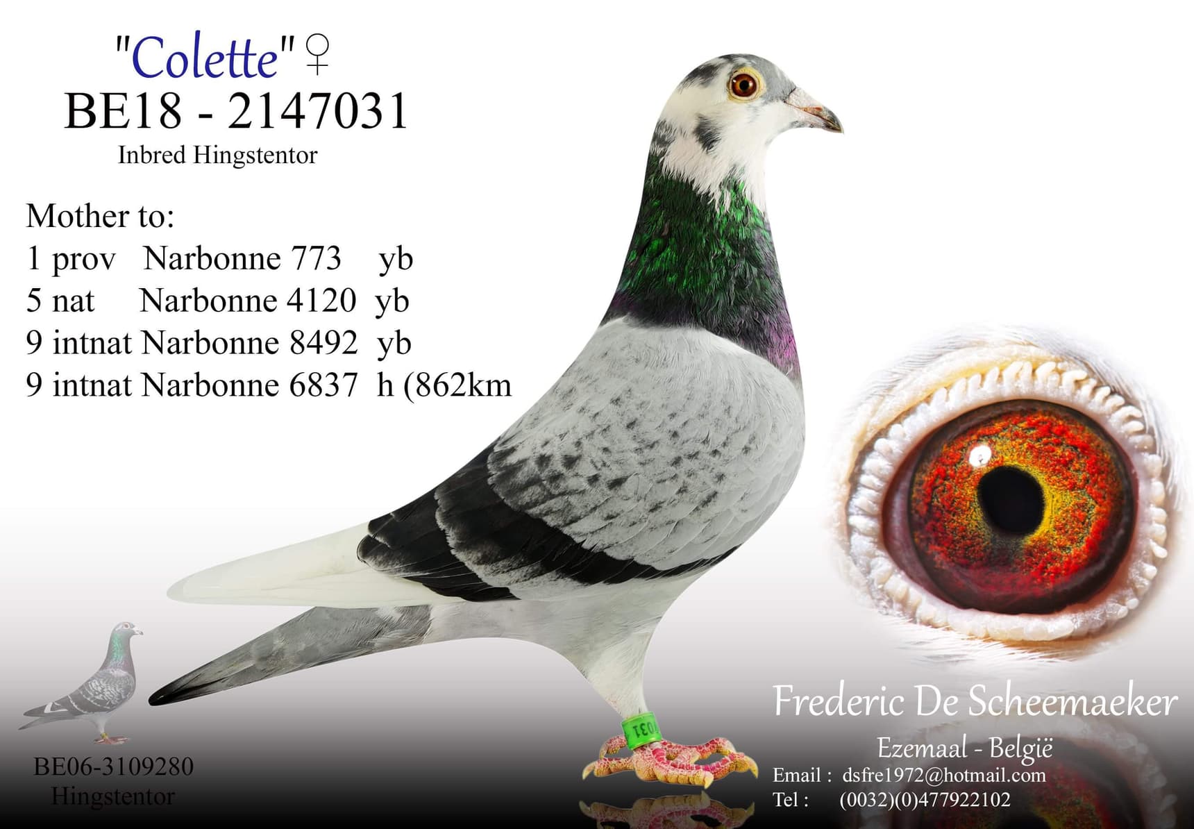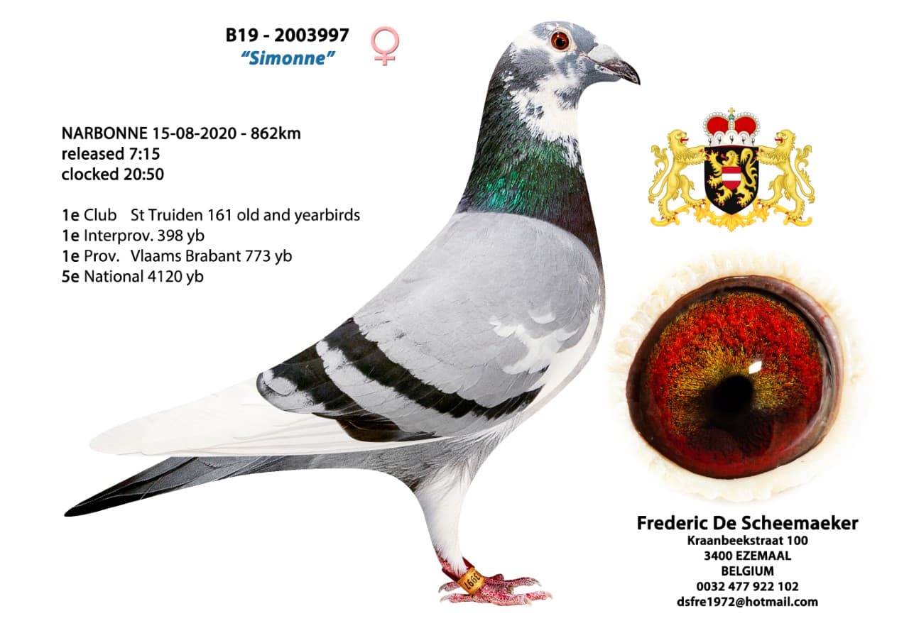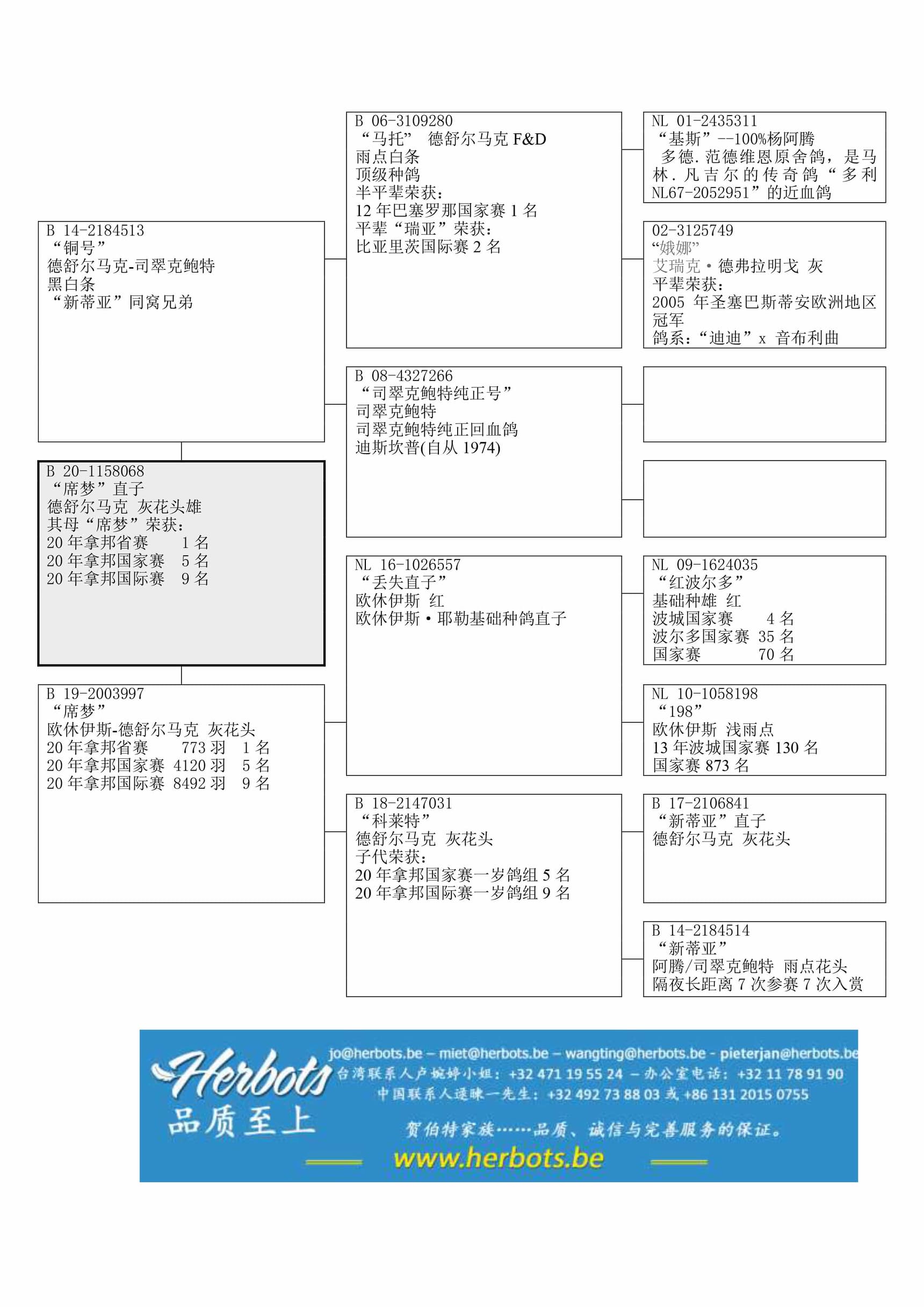 母亲: “席梦” B19-2003997荣获:拿邦省赛 773羽 1名拿邦国家赛 4,120羽 5名拿邦国际赛 8,492羽 9名