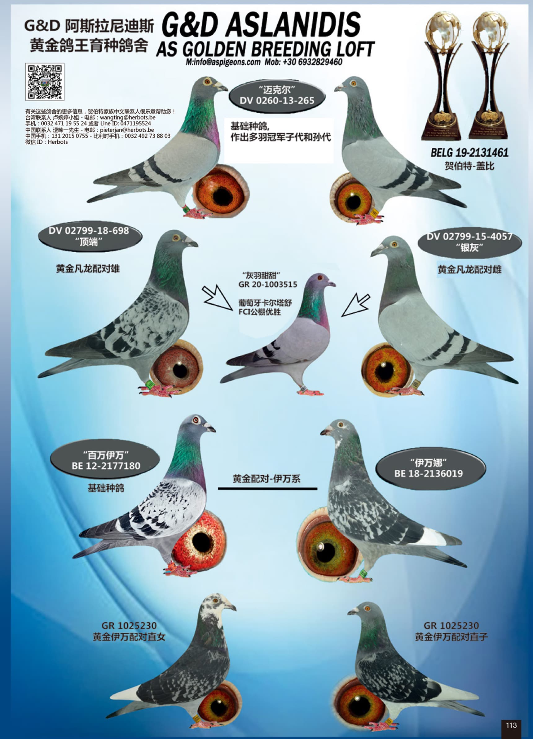“赢家” (奥采伦宁公棚赛1,214羽4名 – 鸽系: 马里恩 x 狄贝塞) x “赫敏” (贺尔曼原舍 – 血系“罗西”) 作出