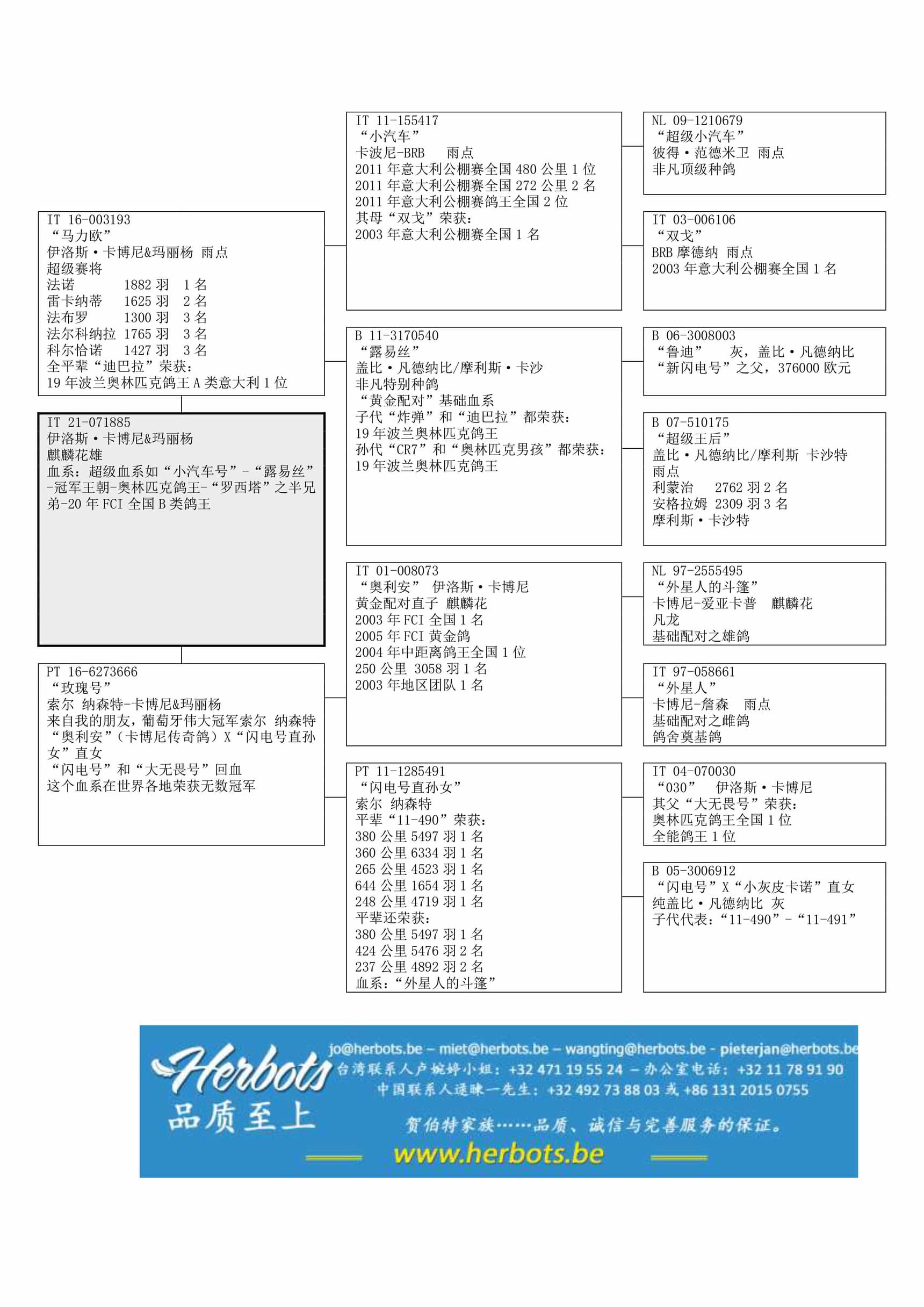 “小汽车” (公棚赛全国1名和2名 - 汽车获得者 – 鸽系: 50% 彼得·范德米卫) x“露易丝” (盖比·凡德纳比原舍 – “鲁迪” x “超级王后”直女) 直子