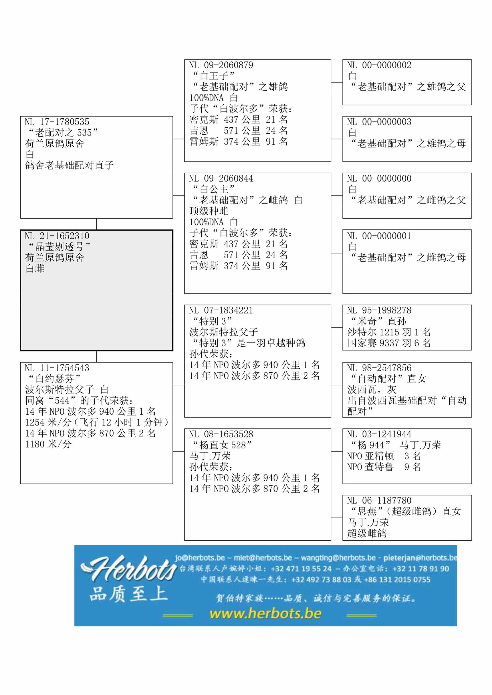 母亲: “白约瑟芬” NL11-1754543“544”之姑. “544” 荣获: NPO波尔多1名 – NPO 贝吉拉克2名.“特别3”(波尔斯特拉父子原舍) x“杨直女528” (马丁.万荣原舍)作出
