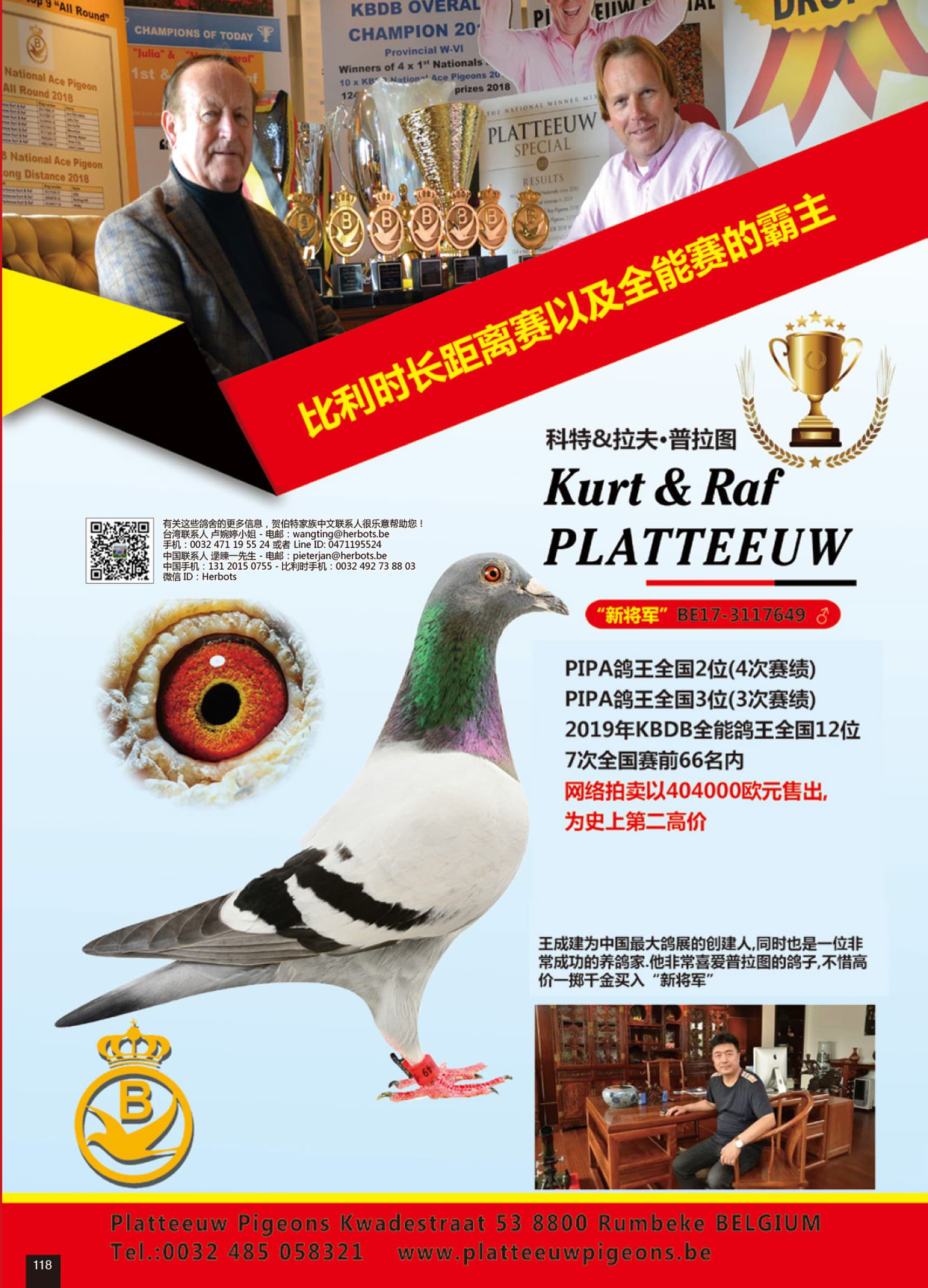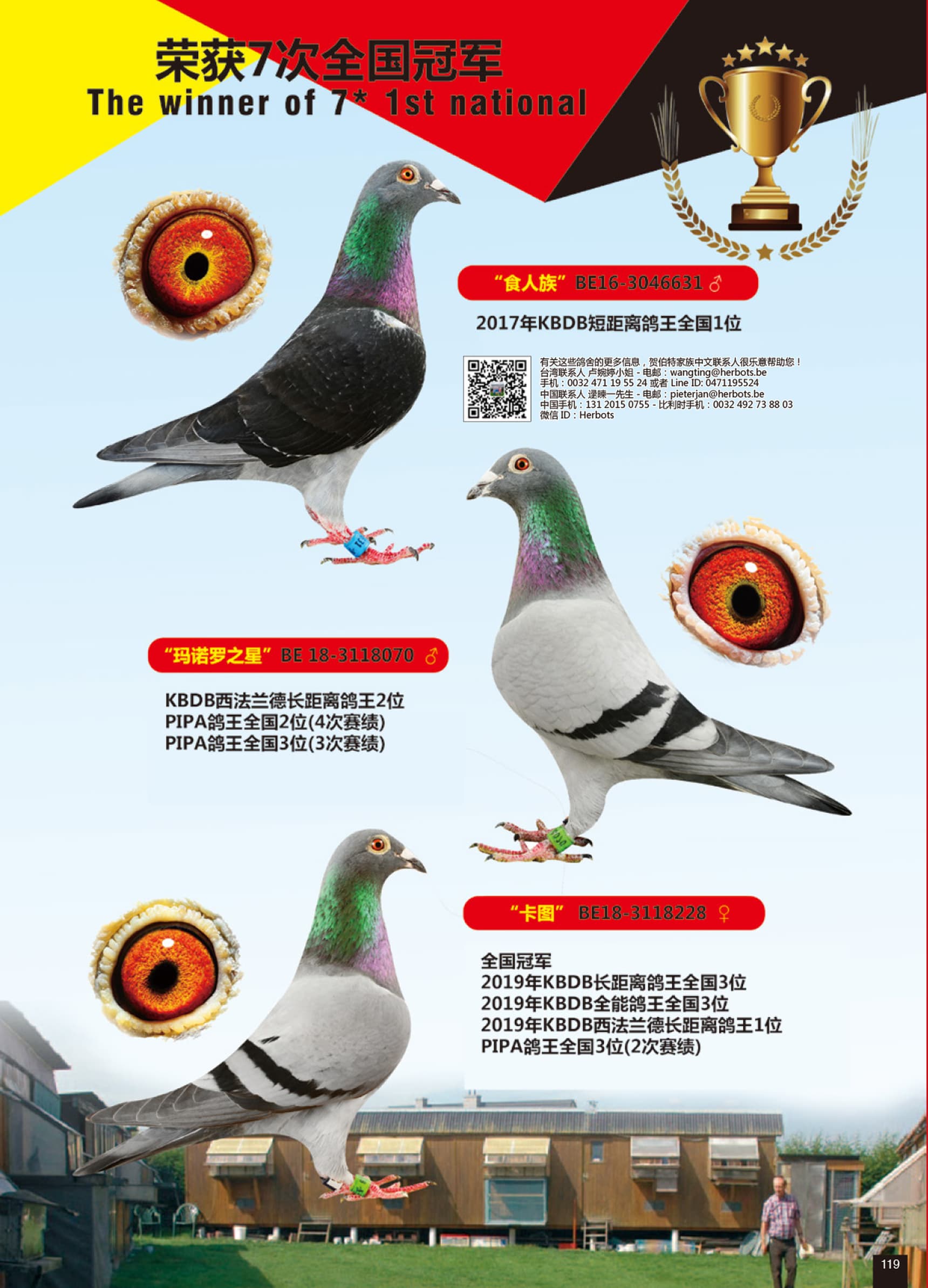 18年KBDB短距离鸽王全省1位;18次入赏前7名