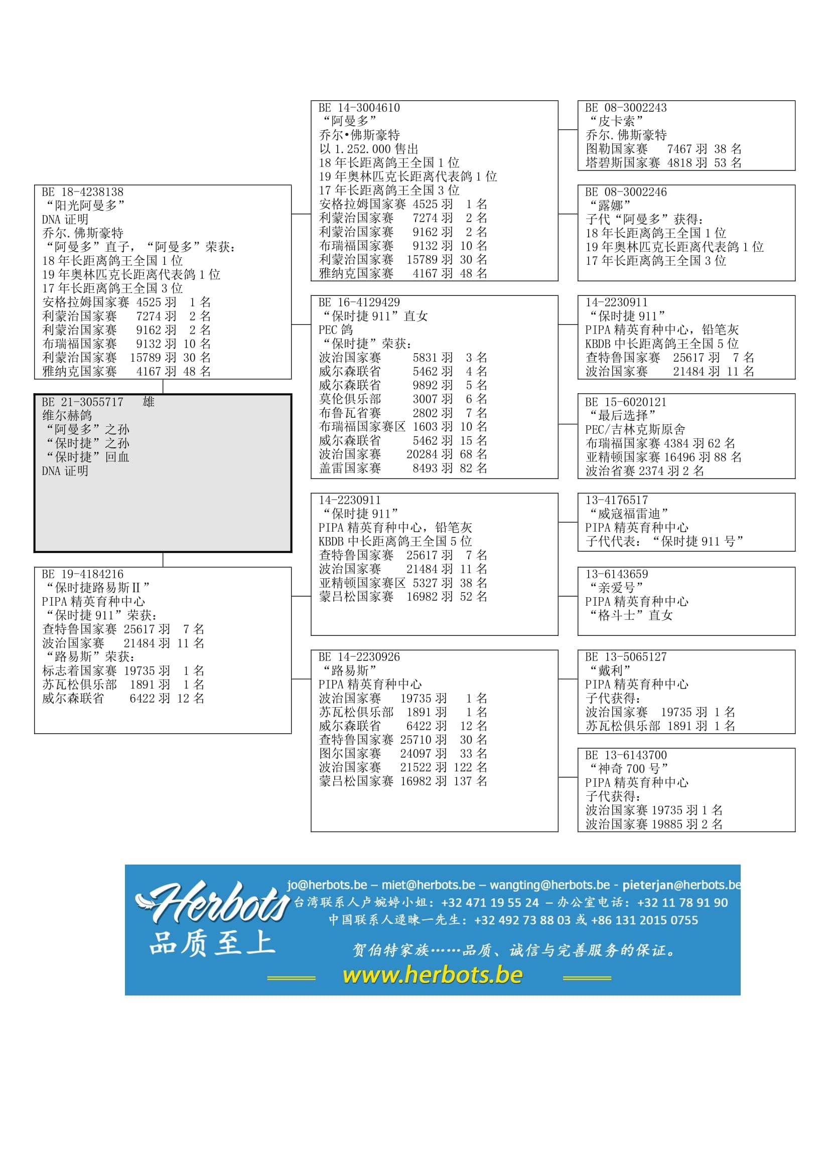 作育者: VELGHE PIGEONS 维尔赫信鸽