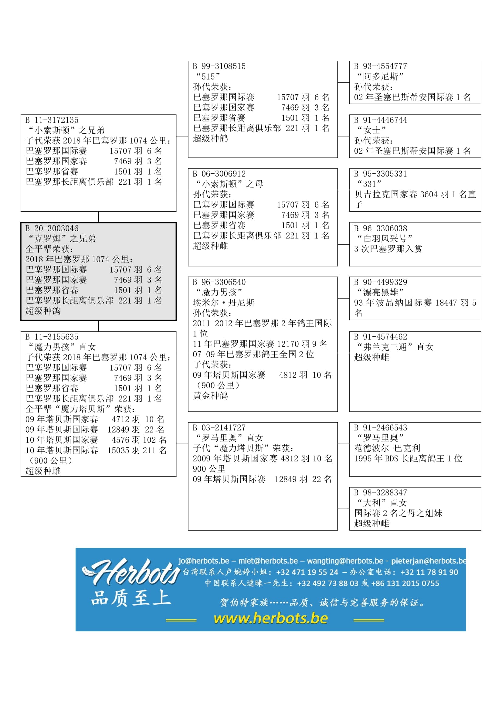 “罗马里奥” (1995年BDS 长距离鸽王1位) x “大利直女”作出