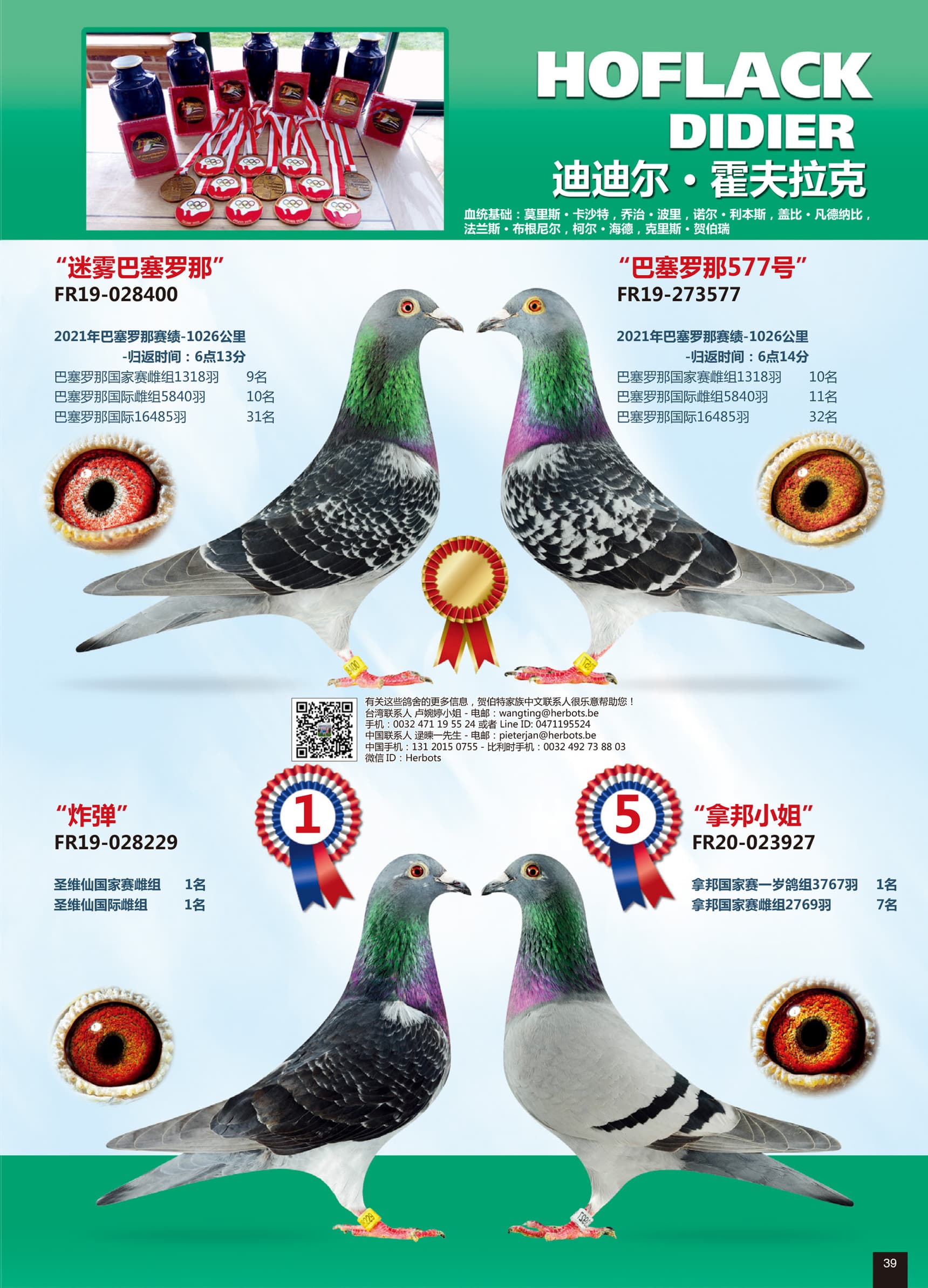 荣获: 19年波兹南奥林匹克法国D类鸽王1位