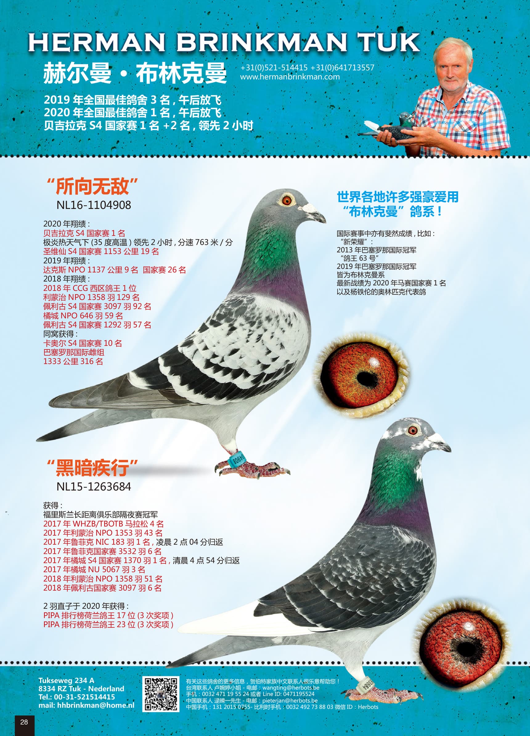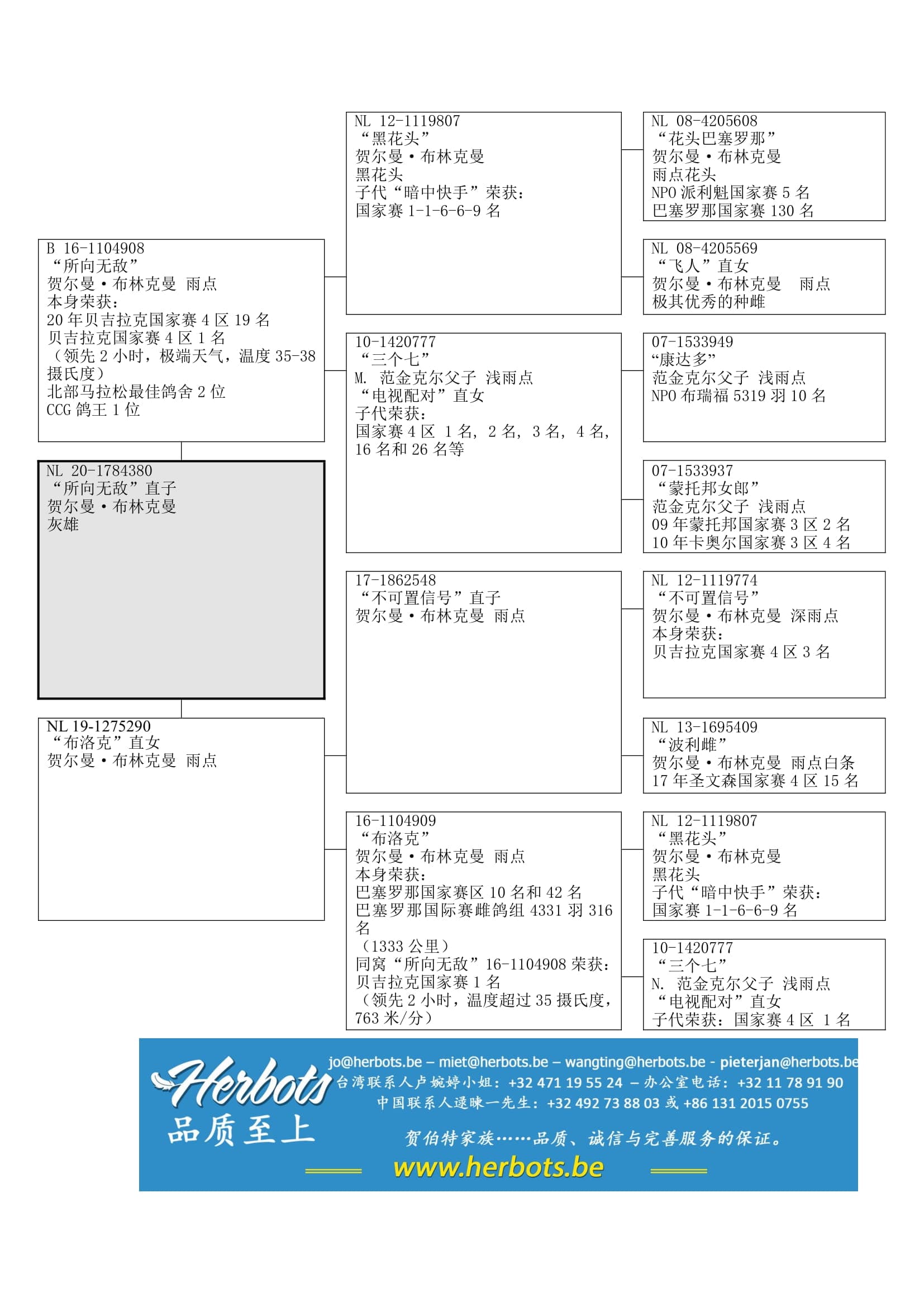 “黑花头” (子代荣获:国家赛4区1名-1名-6名- 6名和9名) x “三个七” (M. 范金克尔原舍 – 子代荣获:国家赛4区 1名, 2名, 3名, 4名, 16名和26名等)作出