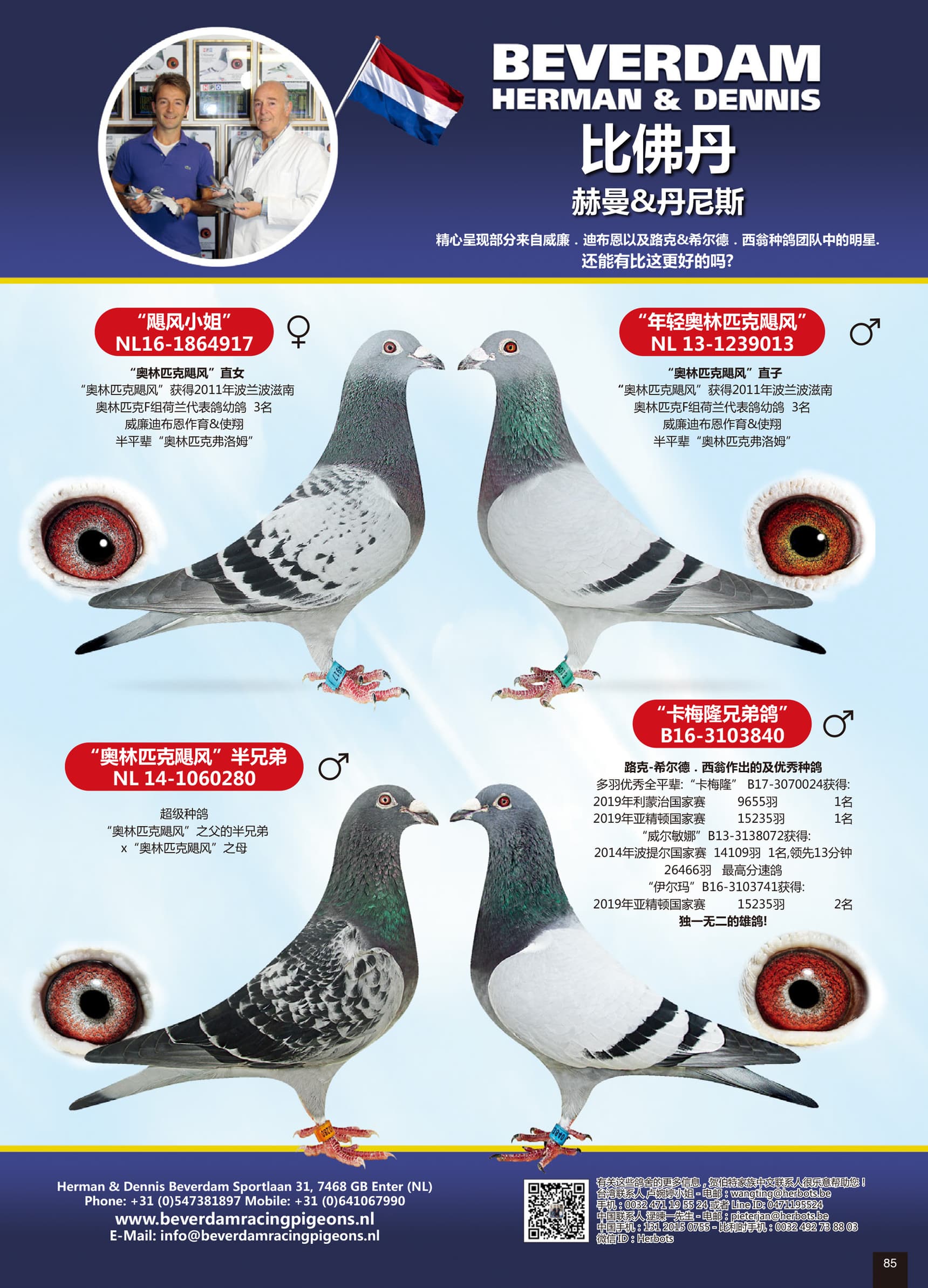 2019年波兹南奥林匹克短距离鸽王3位 (范德帕许)