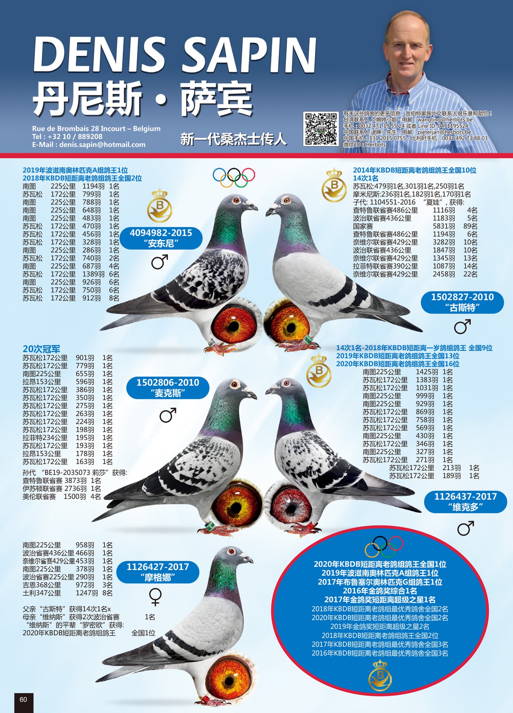 荣获: 19年波兹南奥林匹克A类代表鸽