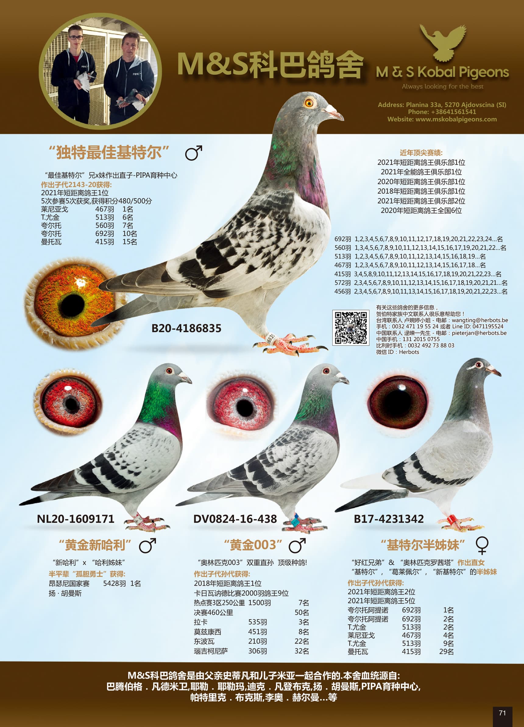 2,089羽1名 – 1,792羽1名 – 2,023羽2名 - 2,443羽3名 – “奇特尔”的后代在全世界各种比赛中获得无数冠军