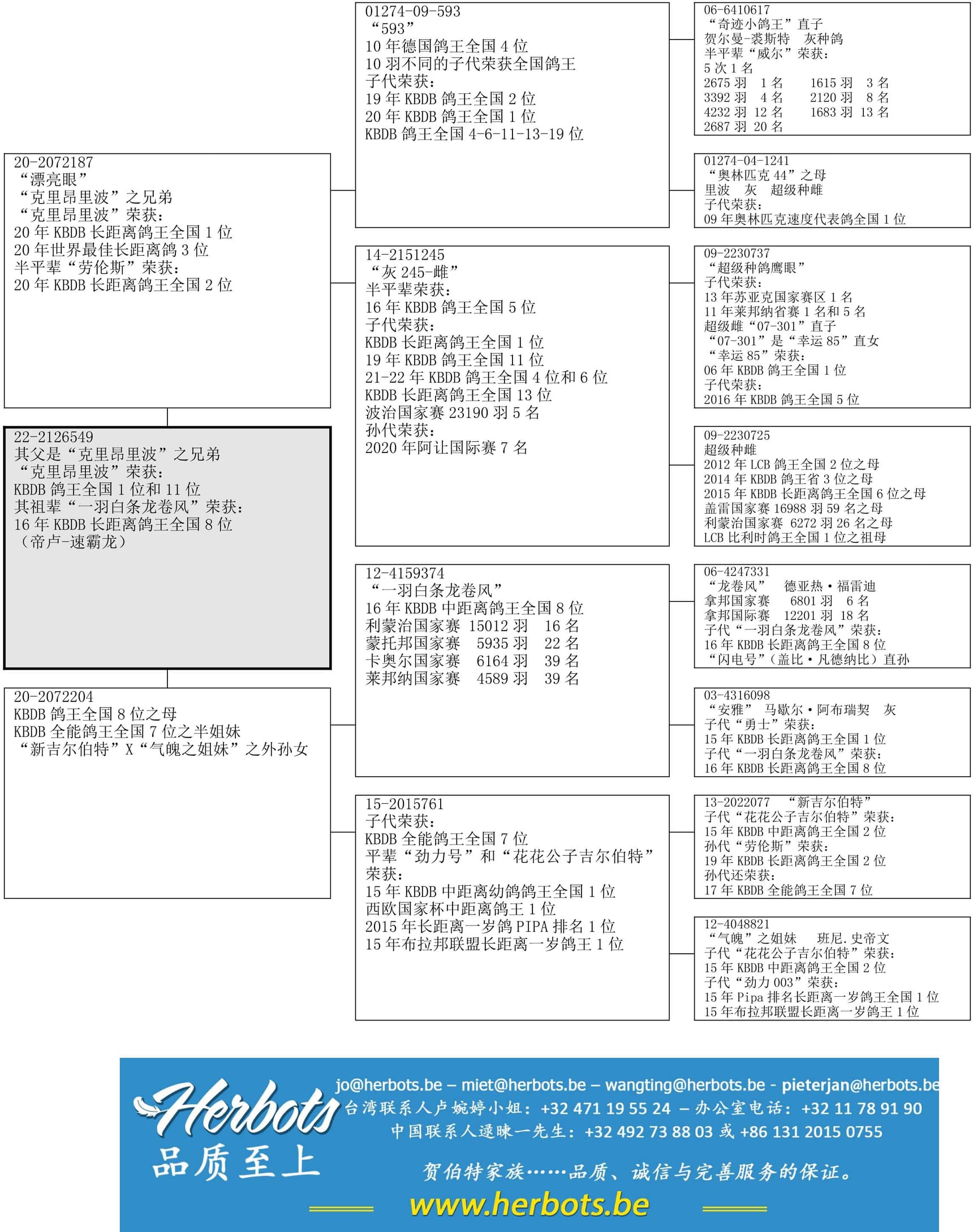 20年世界最佳长距离鸽3位 - 19年KBDB中长距离幼鸽鸽王全国11位 - KBDB 2020年KBDB奥林匹克D类鸽王4位 - 利蒙治国家赛 9,756羽6名 - 布瑞福国家赛 4,238羽8名 - 亚精顿国家赛 23,258羽66名