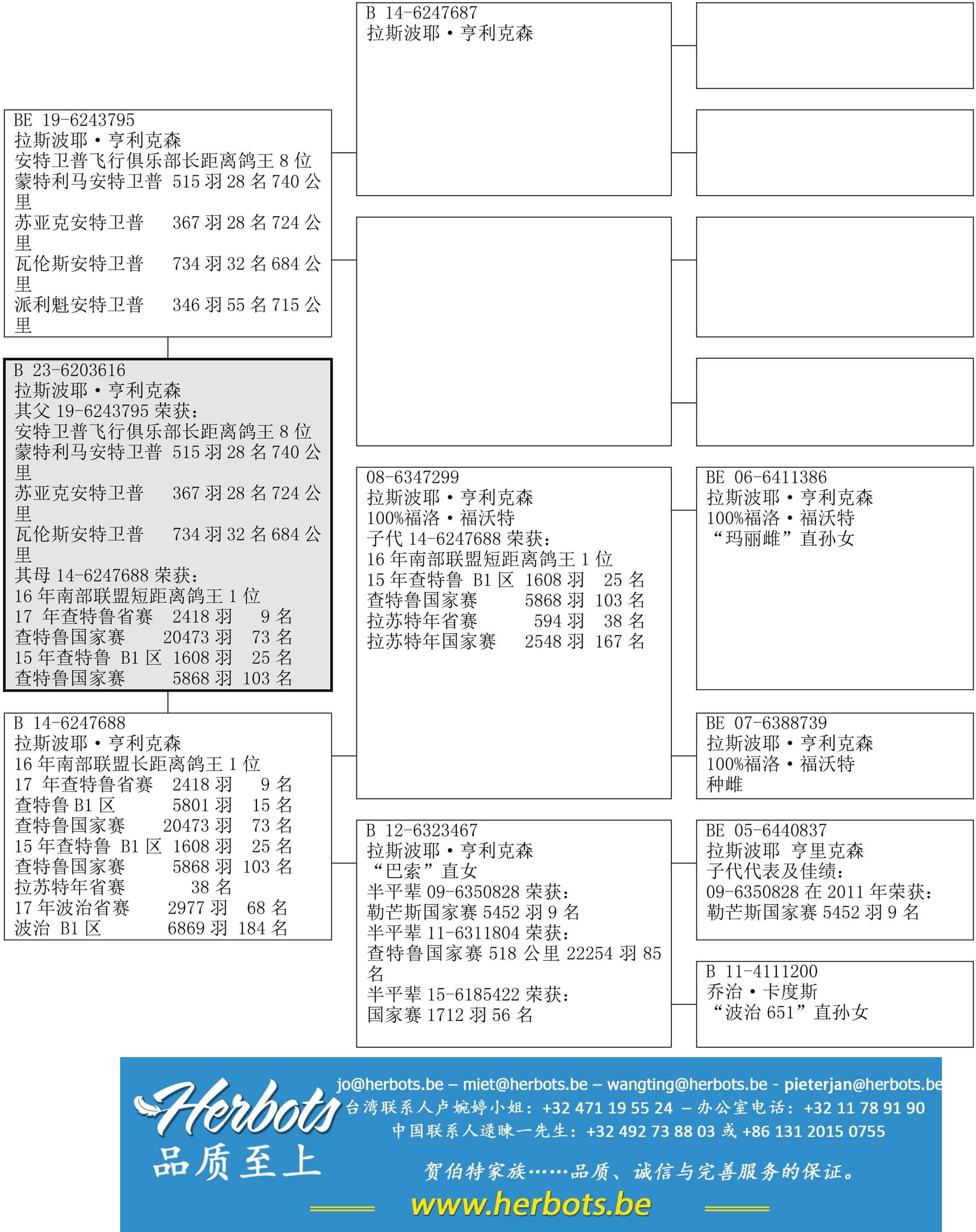 母亲: “B14-6247688”荣获: 2016年南部联盟长距离鸽王1位 查特鲁国家赛 20,473羽73名 鸽系: 福洛·福沃特 x 卡度斯