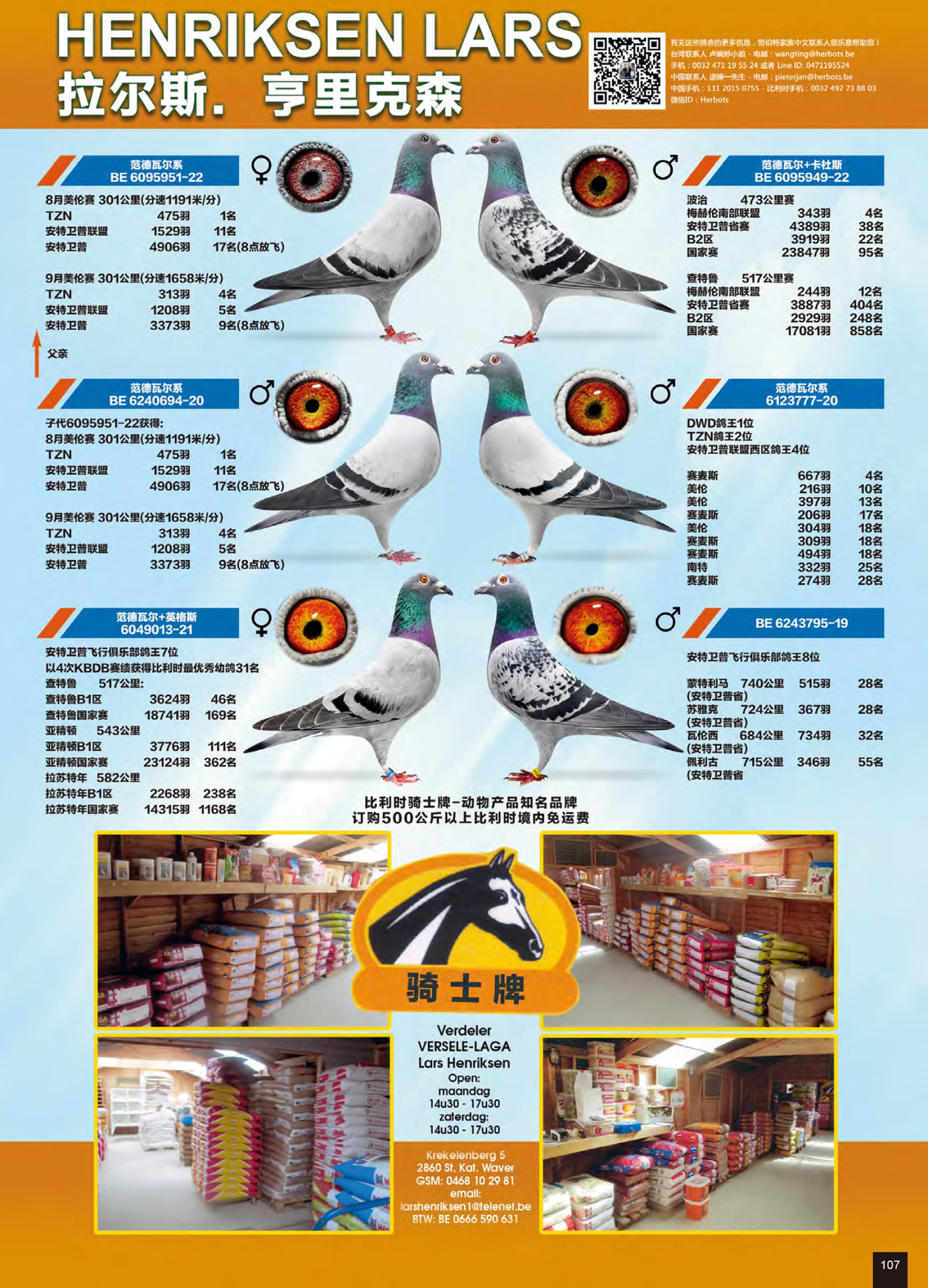父亲: “B19-6243795”荣获: 安特卫普飞行俱乐部长距离鸽王8位蒙特利马省赛 515羽25名 – 苏亚克省赛 367羽28名 – 瓦伦斯省赛 734羽32名
