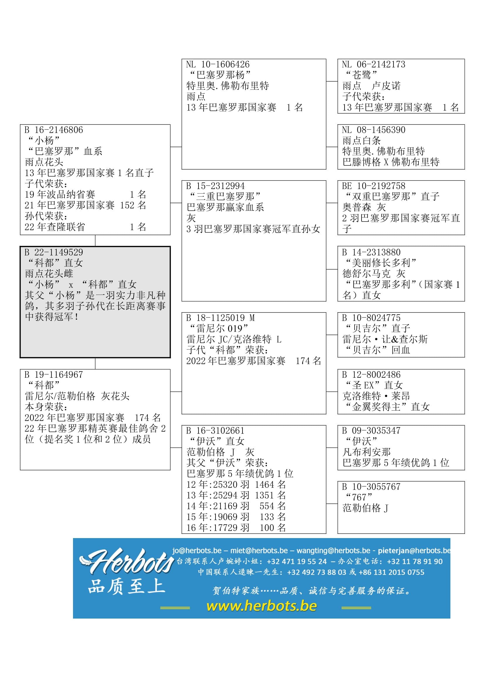 巴塞罗那5年绩优鸽1位(范勒伯格使翔)直女
