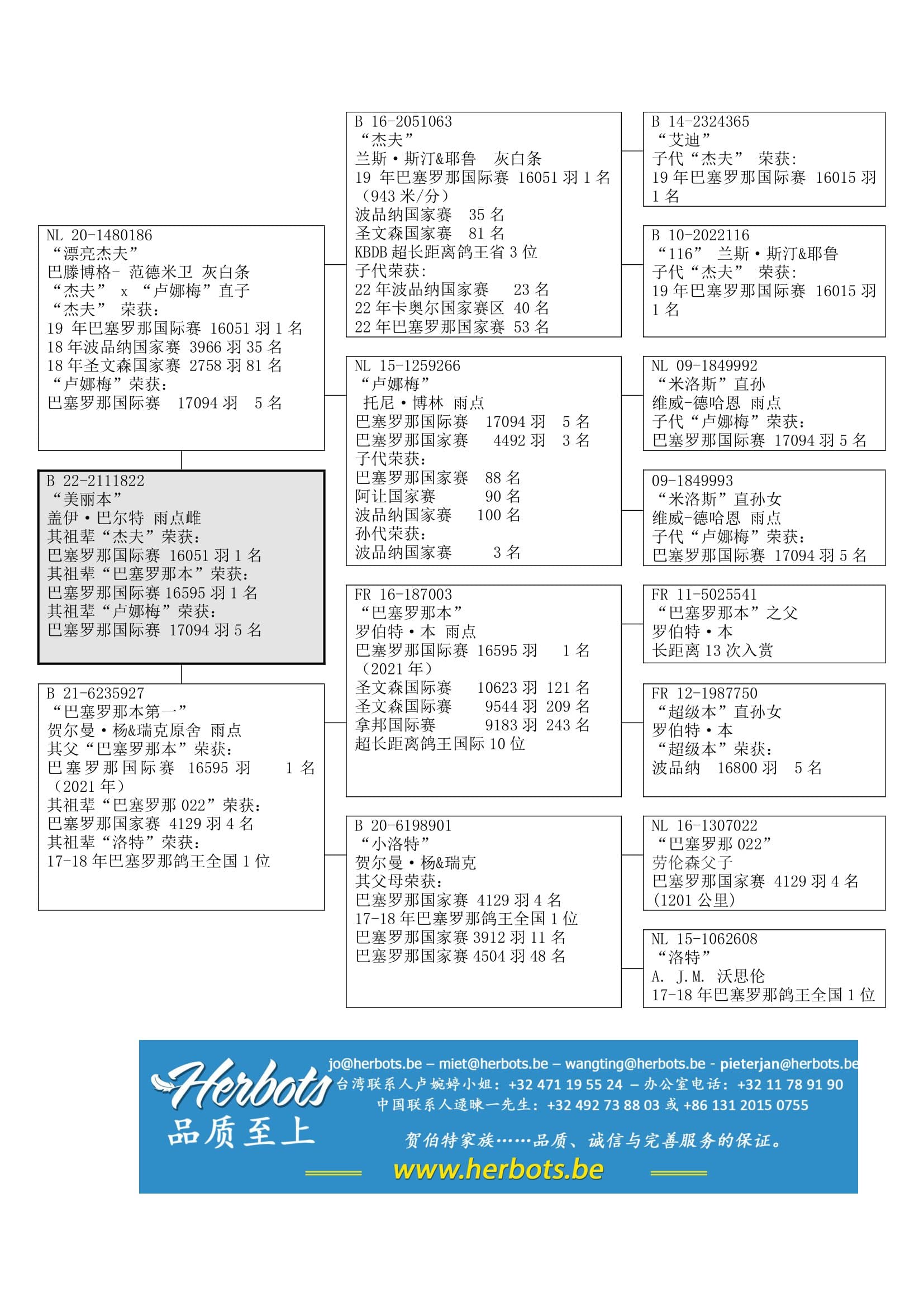 “巴塞罗那 022” (巴塞罗那国家赛4,129羽4名) x “洛特” (17-18年荷兰巴塞罗那鸽王全国1位) 作出