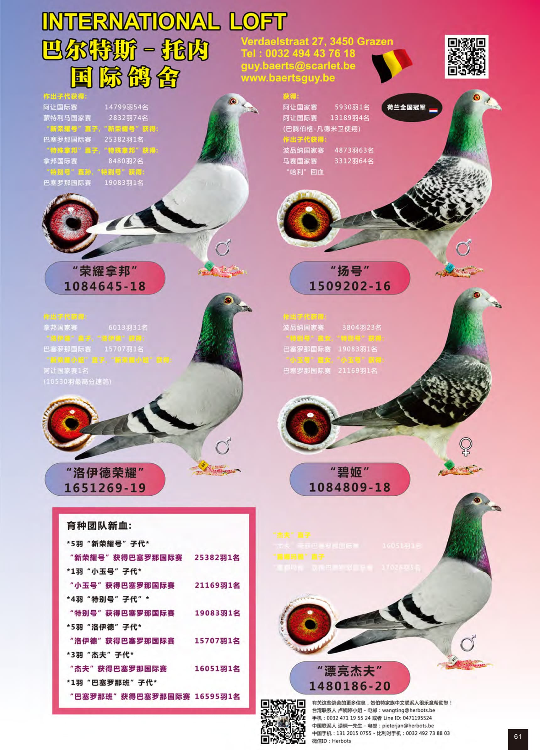 巴塞罗那国际赛 16,595羽1名 – 圣文森国际赛 10,623羽121名 – 圣文森国际赛9,544羽209名 – 拿邦国际赛 9,183羽243名