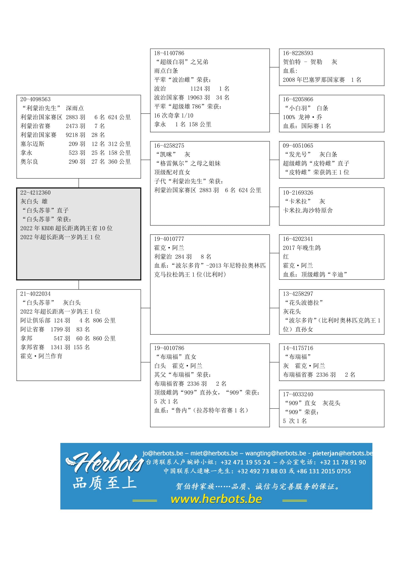 “B19-4010777” (荣获 利蒙治 284羽8名)x“布瑞福直女” (布瑞福省赛 2,336羽2名直女) 作出