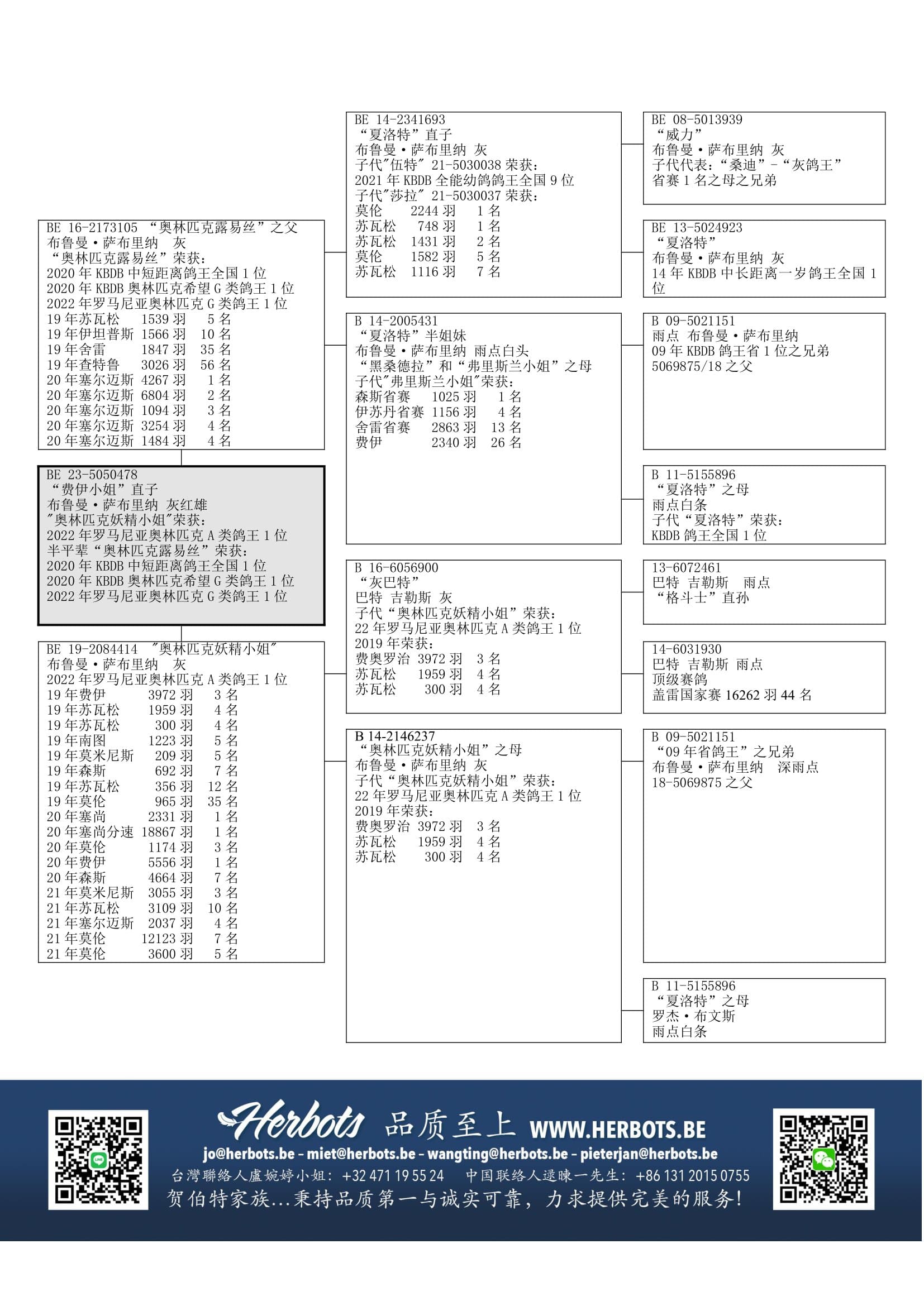 KBDB奥林匹克希望G类鸽王1位 - 2022年