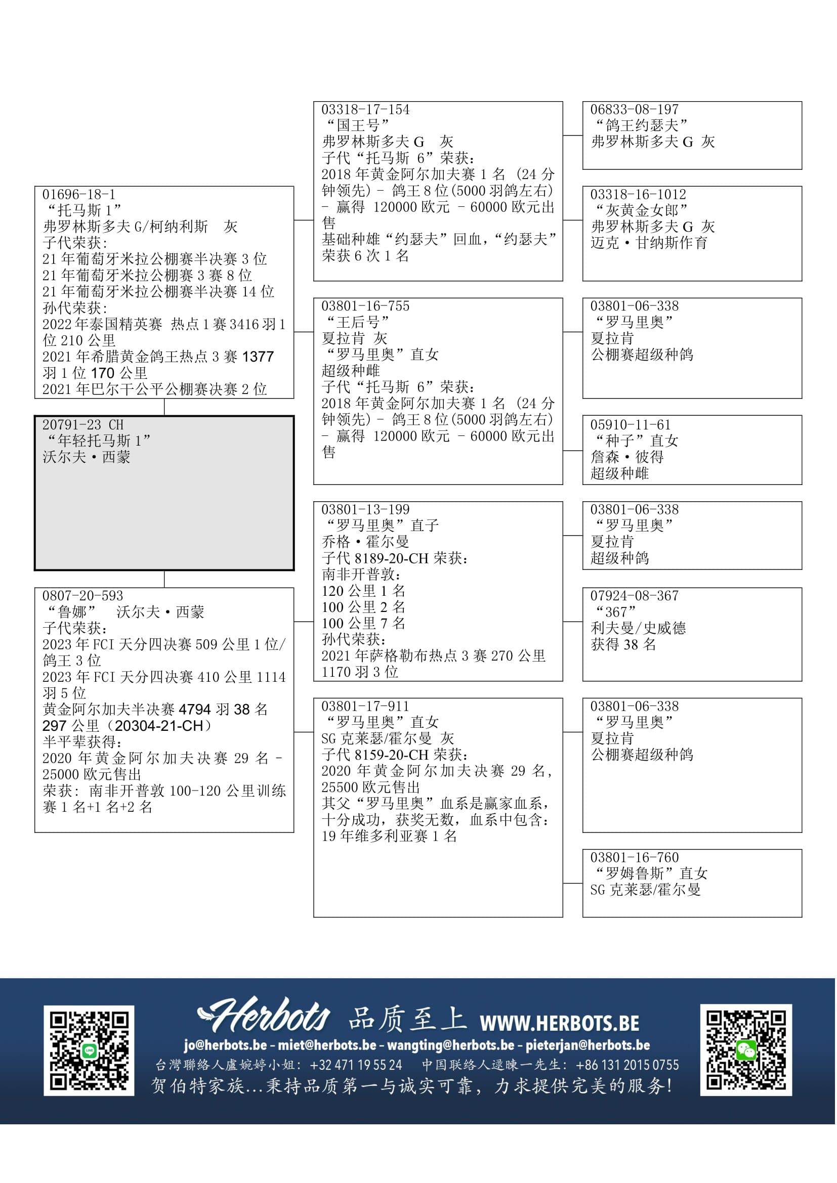 以上提到的顶级鸽以及下列获奖鸽: