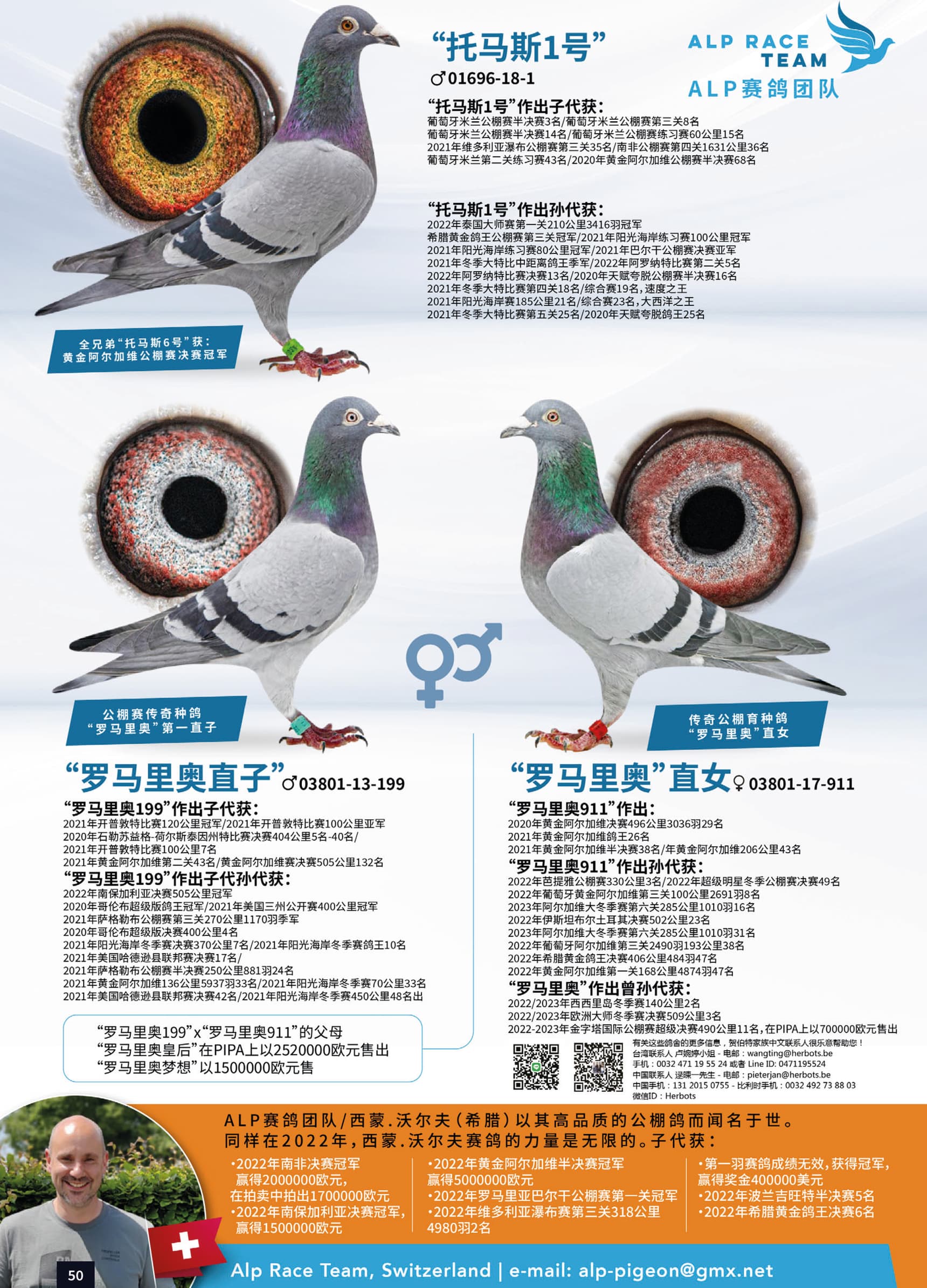 作育者: ALP RACE TEAM/SIMON WOLF 阿尔卑赛鸽队