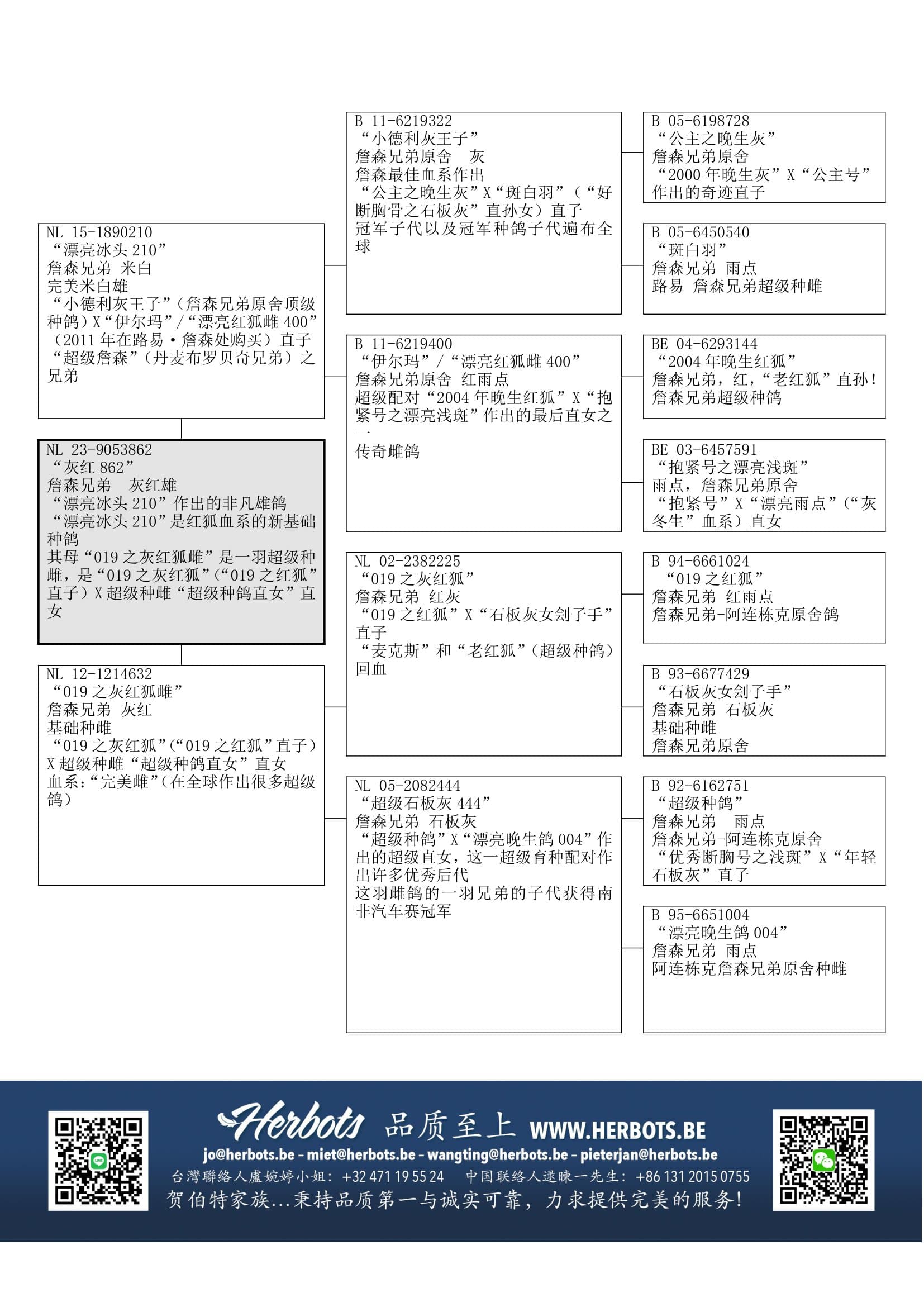 “2004年晚生红狐” (40,000欧元售出) x “漂亮浅斑”( 铭鸽“抱紧号” x“ 冬生号直孙女”作出) 直女