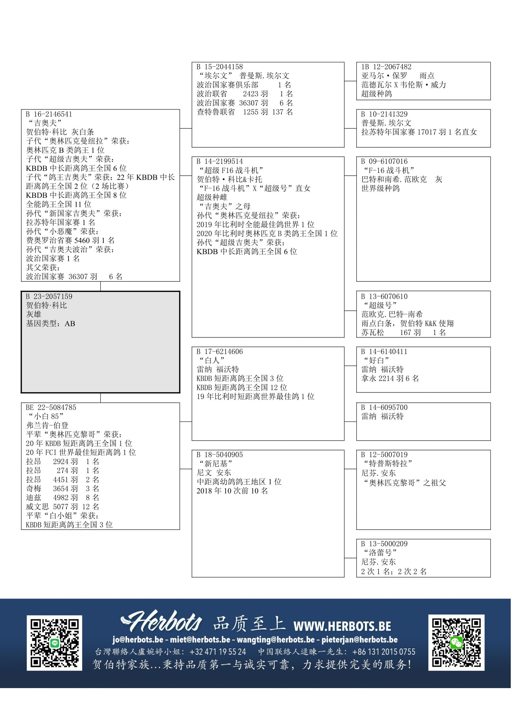 “埃尔文” (波治国家赛 36,307羽6名 – 普曼斯原舍) x “超级F16” ( 范欧克的全国冠军“F16”直女)直子