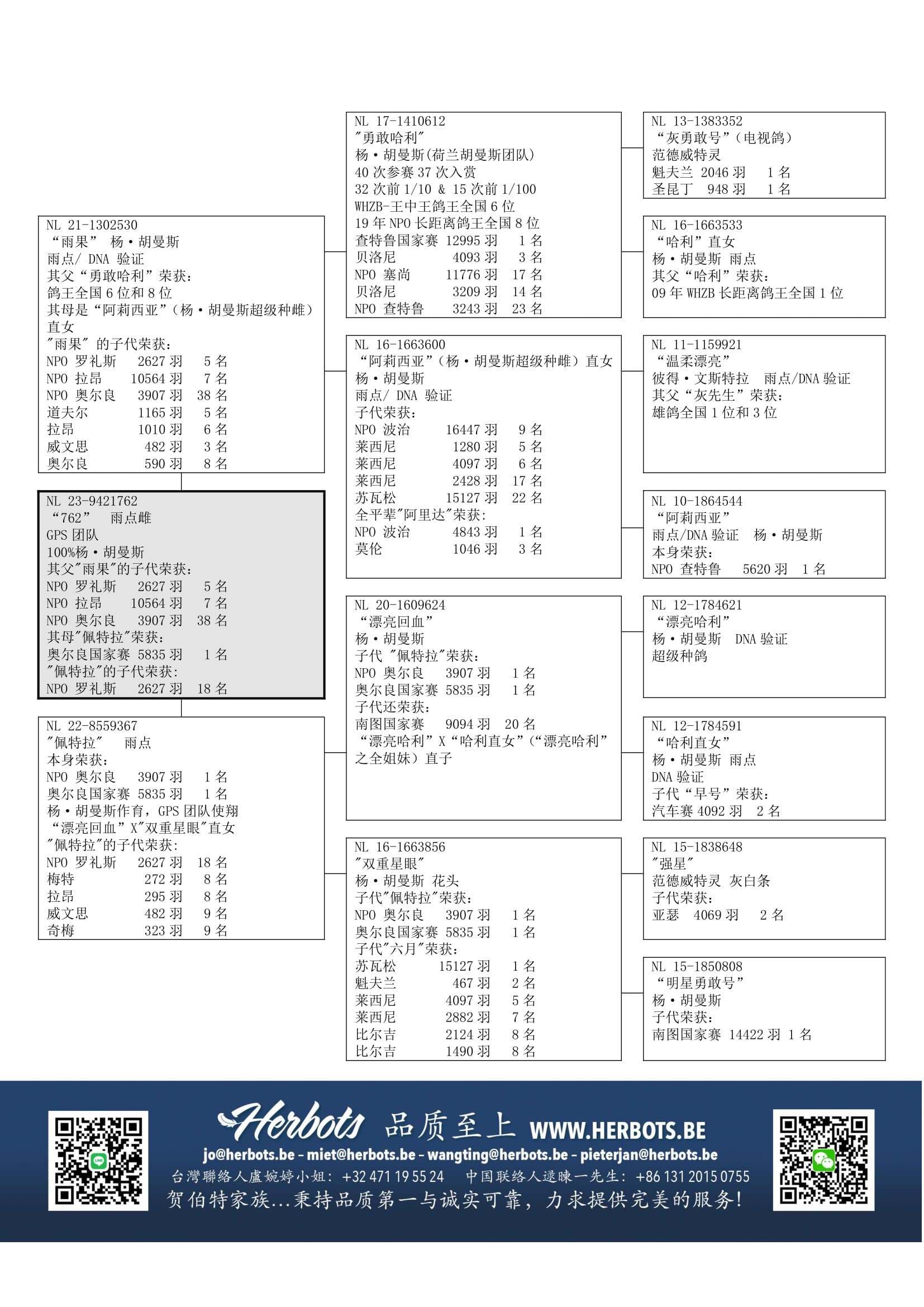 “漂亮回血” (出自“漂亮哈利” x 他的姐妹) x“双重星眼” (子代荣获苏瓦松 15,127羽1名) 直女