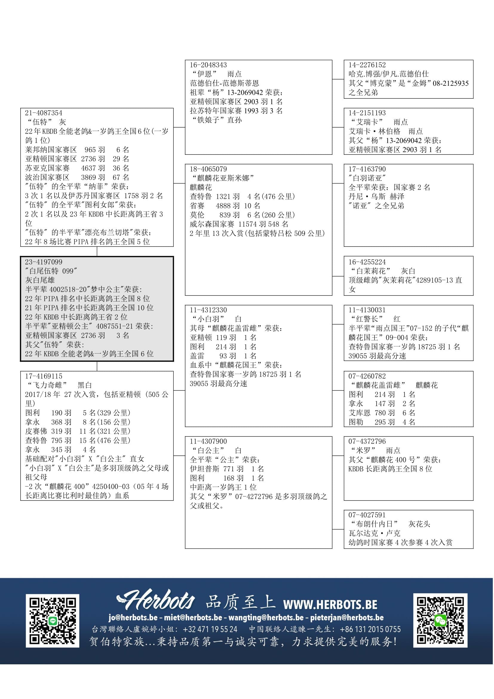 “纳菲” (3 次1名) – “图利女郎” (2 次1名 - 23年中距离鸽王省3位)