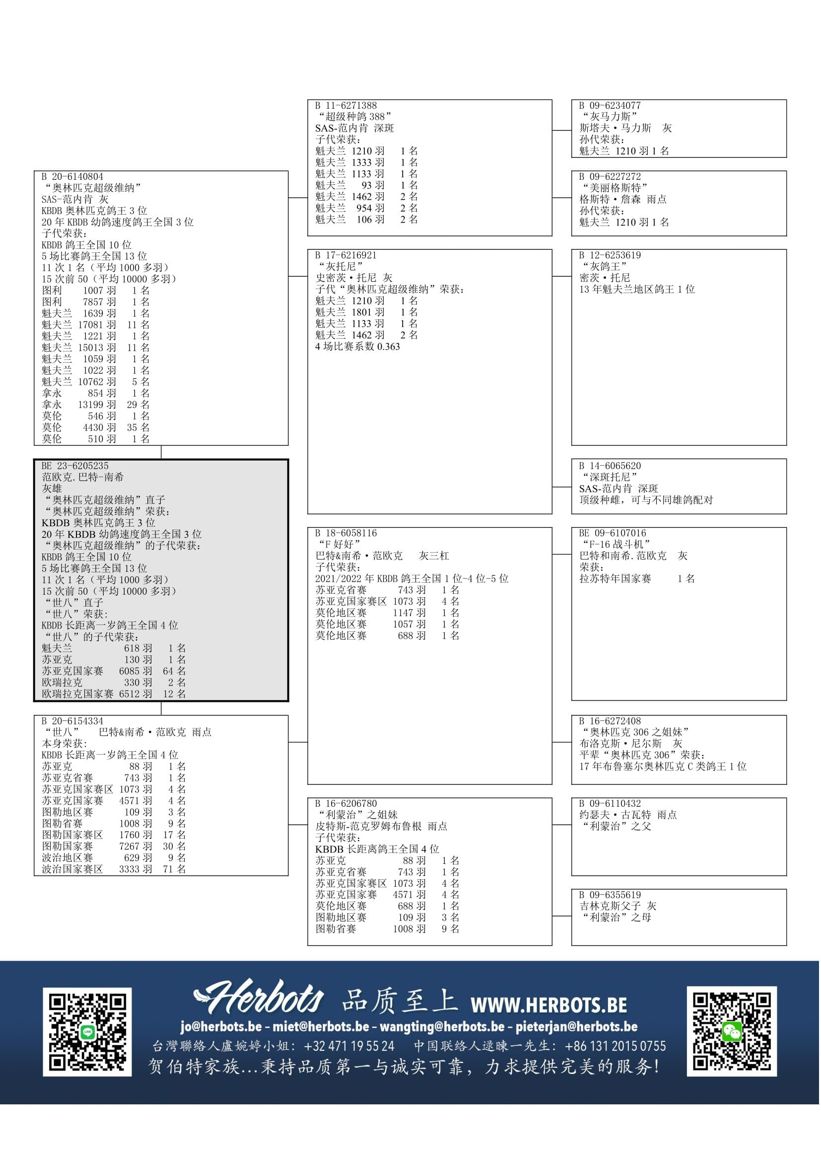 冠军种鸽 “F好好”x “利蒙治之姐妹” (鸽系: 古瓦特 x 吉林克斯 ) 直女