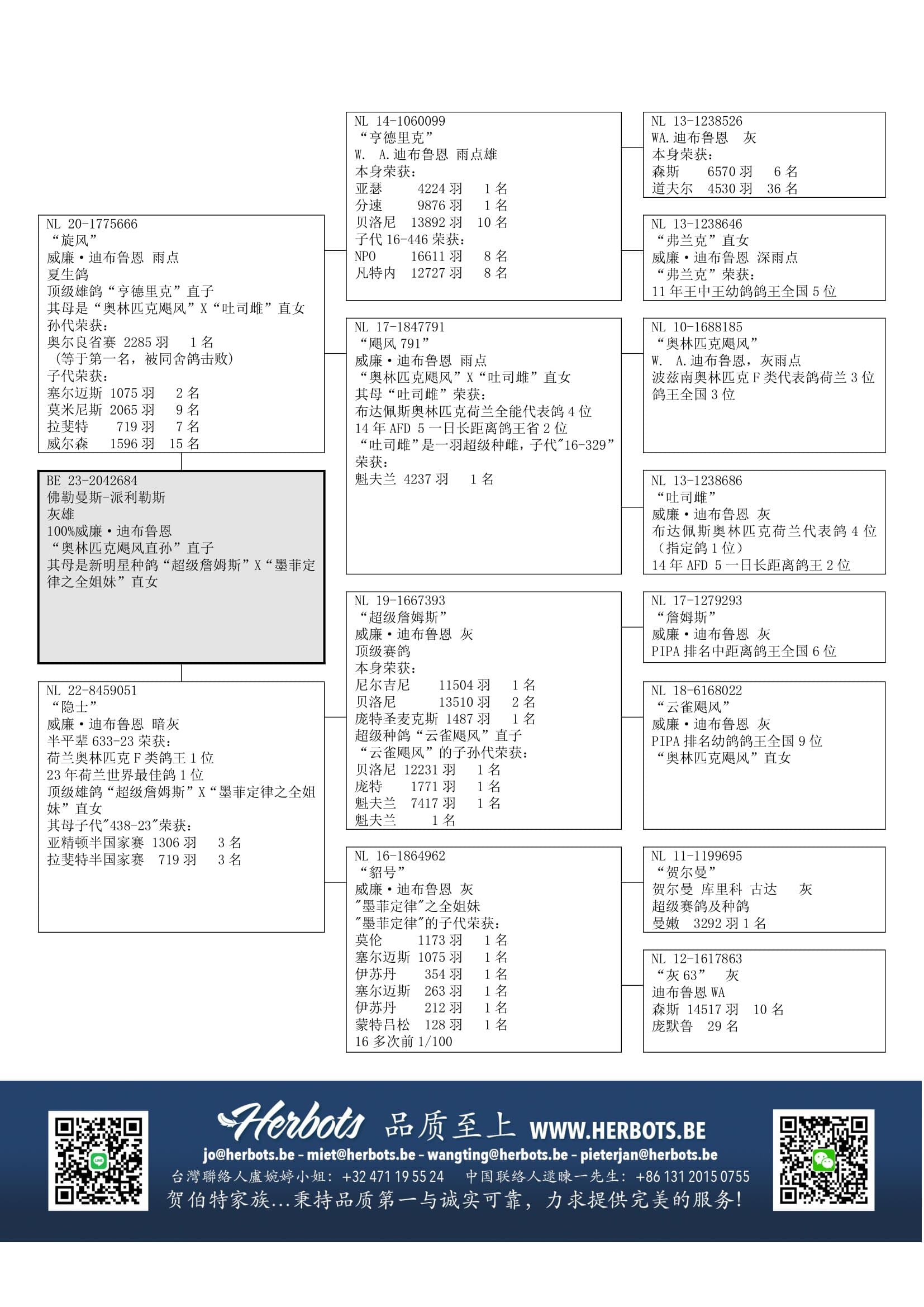 当前的基础种鸽, 多代后代在鸽王各类, 比赛中获得高位翔绩