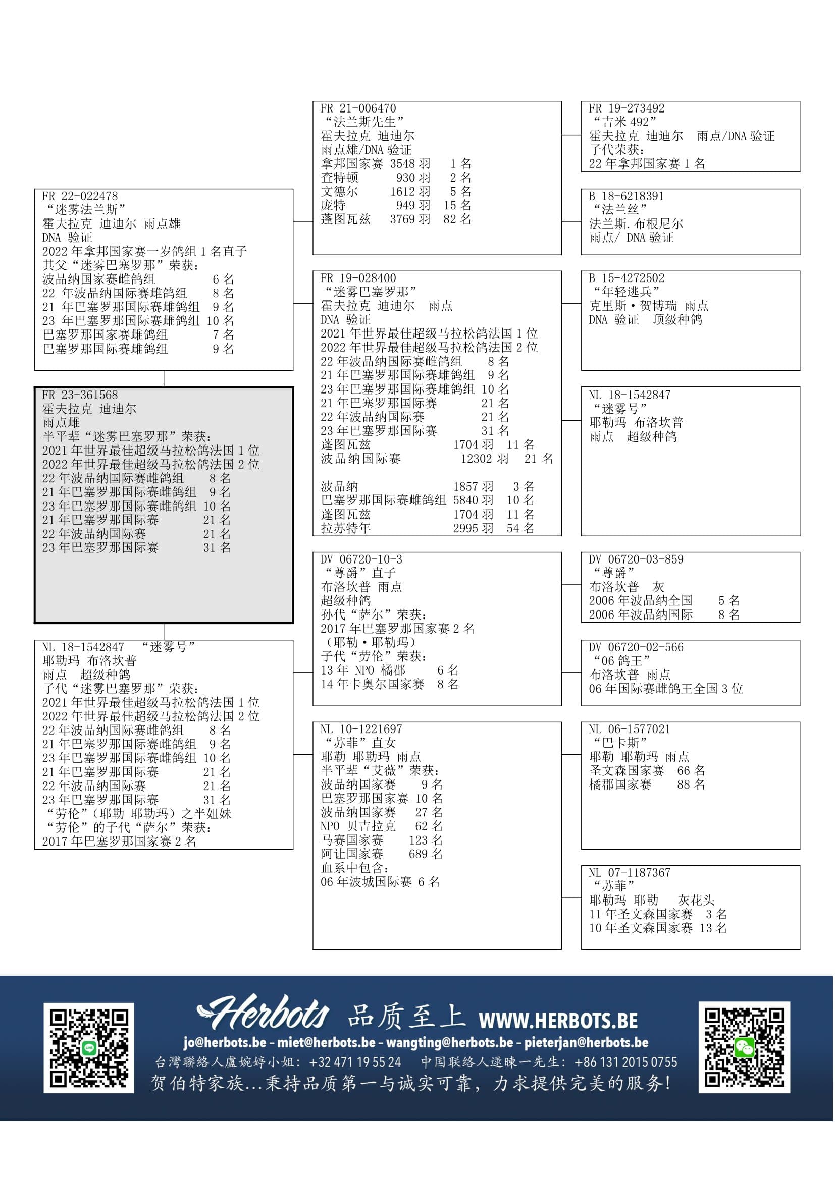 22年波品纳国际赛 – 12,302羽21名 - 国际赛雌鸽组8名