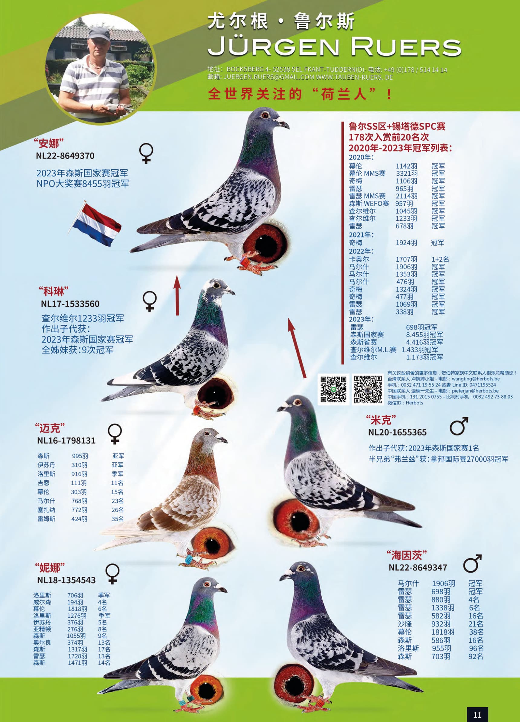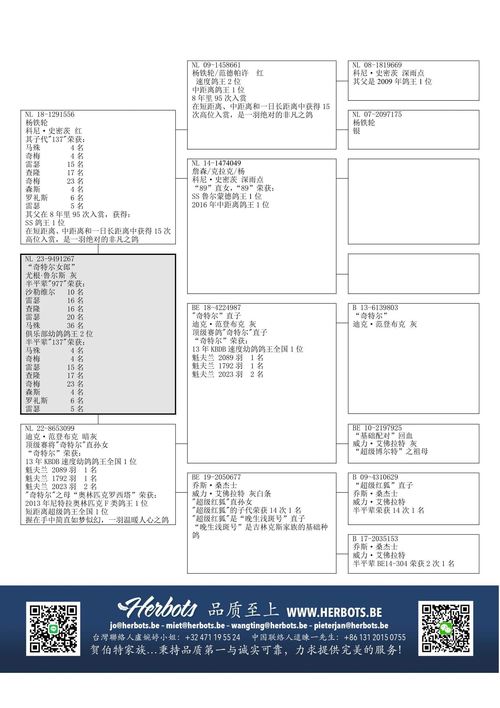 “NL09-1458661” (8个赛季95次入赏) x “NL14-1474049” (鲁尔蒙德鸽王1位直女)作出