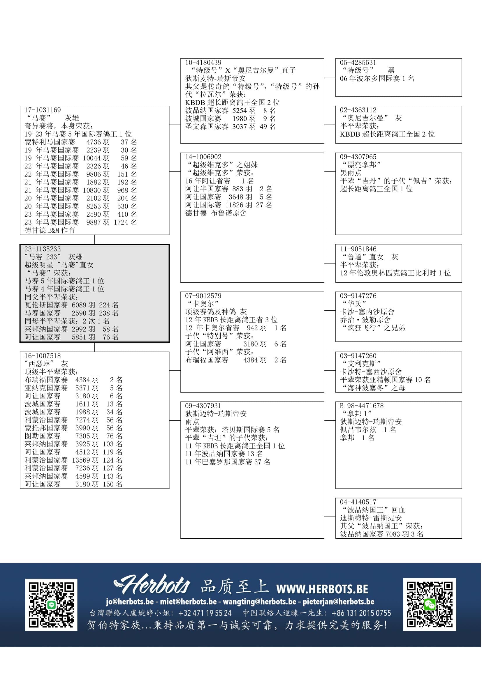 23年马赛国家赛410名 – 国际赛9,887羽1728名