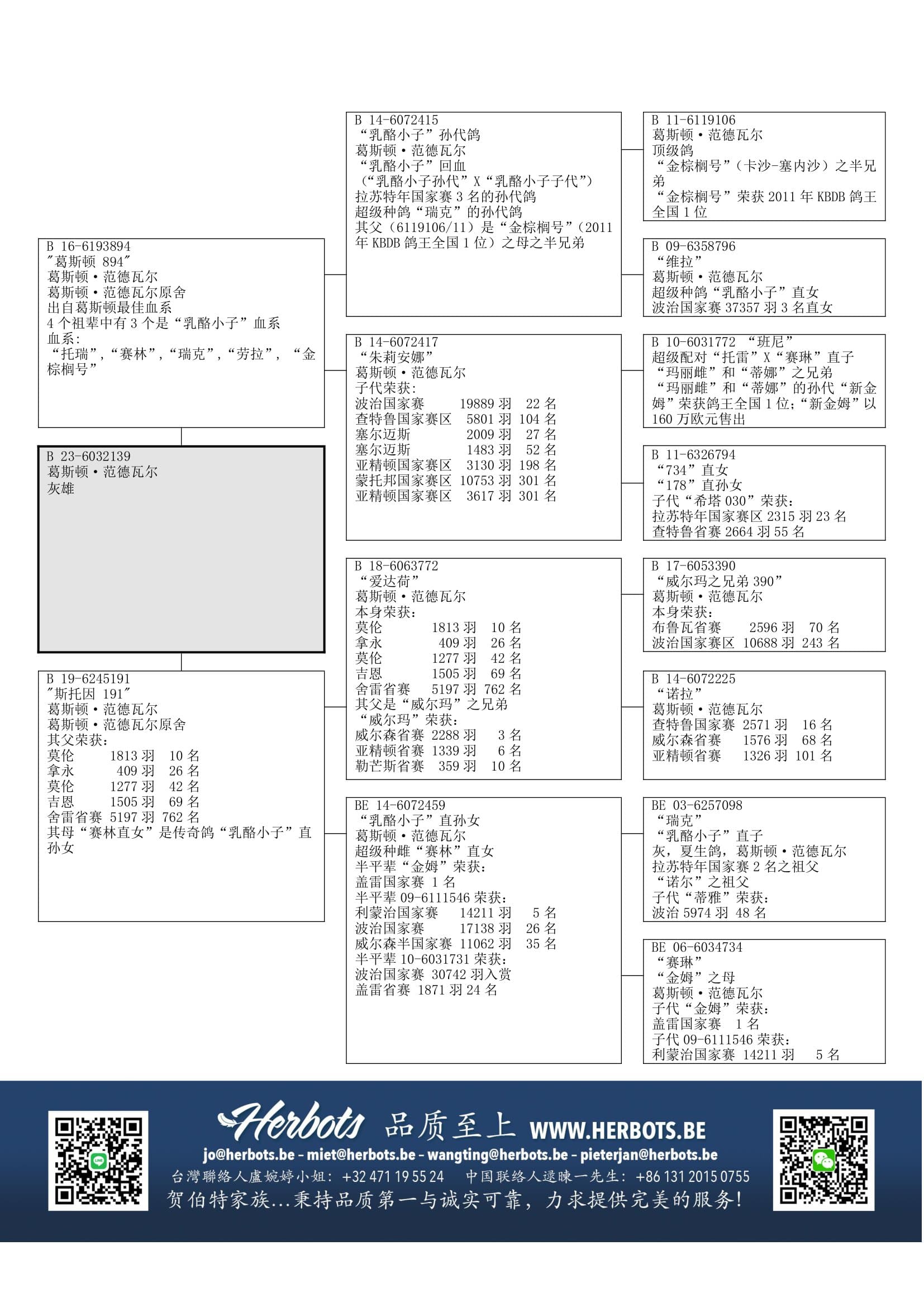 “顶级鸽” (“金棕榈”之母之半兄弟) x “薇拉” (波治国家赛 37,357羽3名直女) 直子