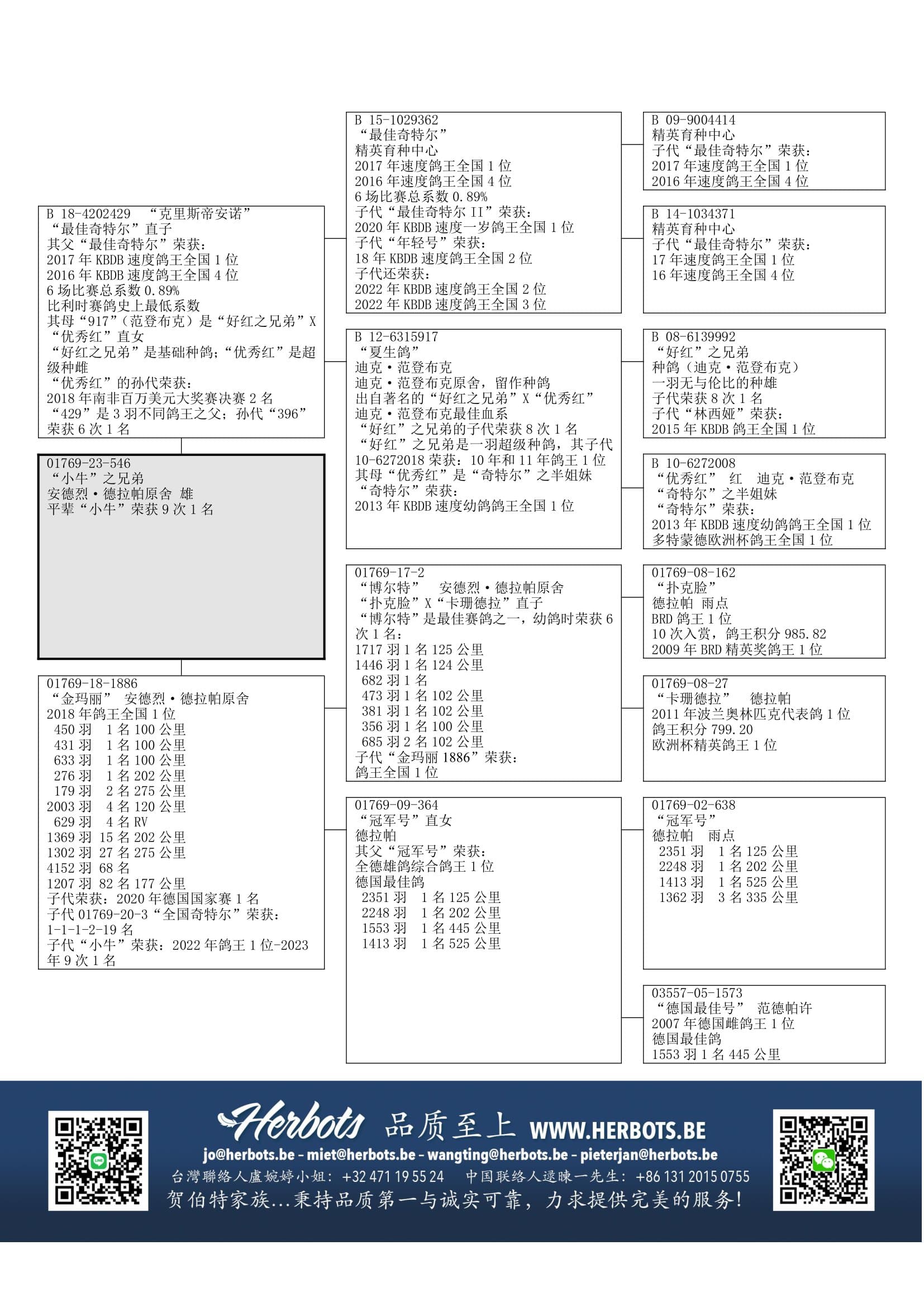 “夏生鸽” B12-6315917 – 迪克·范登布克原舍