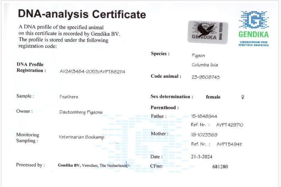 世界铭鸽“哈利” (胡曼斯·杨) 直孙女