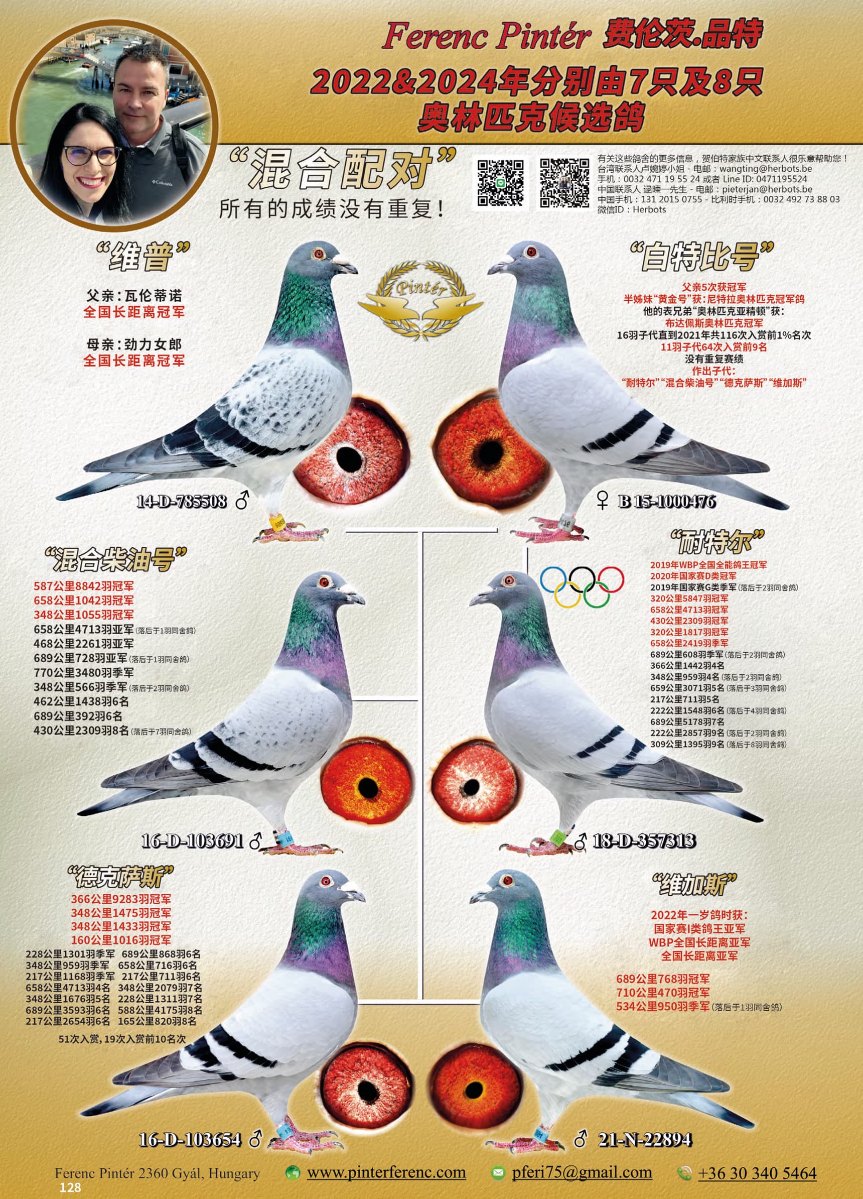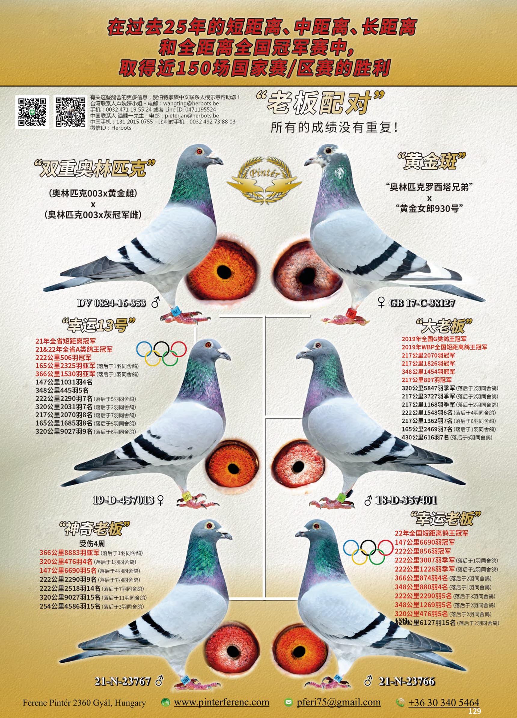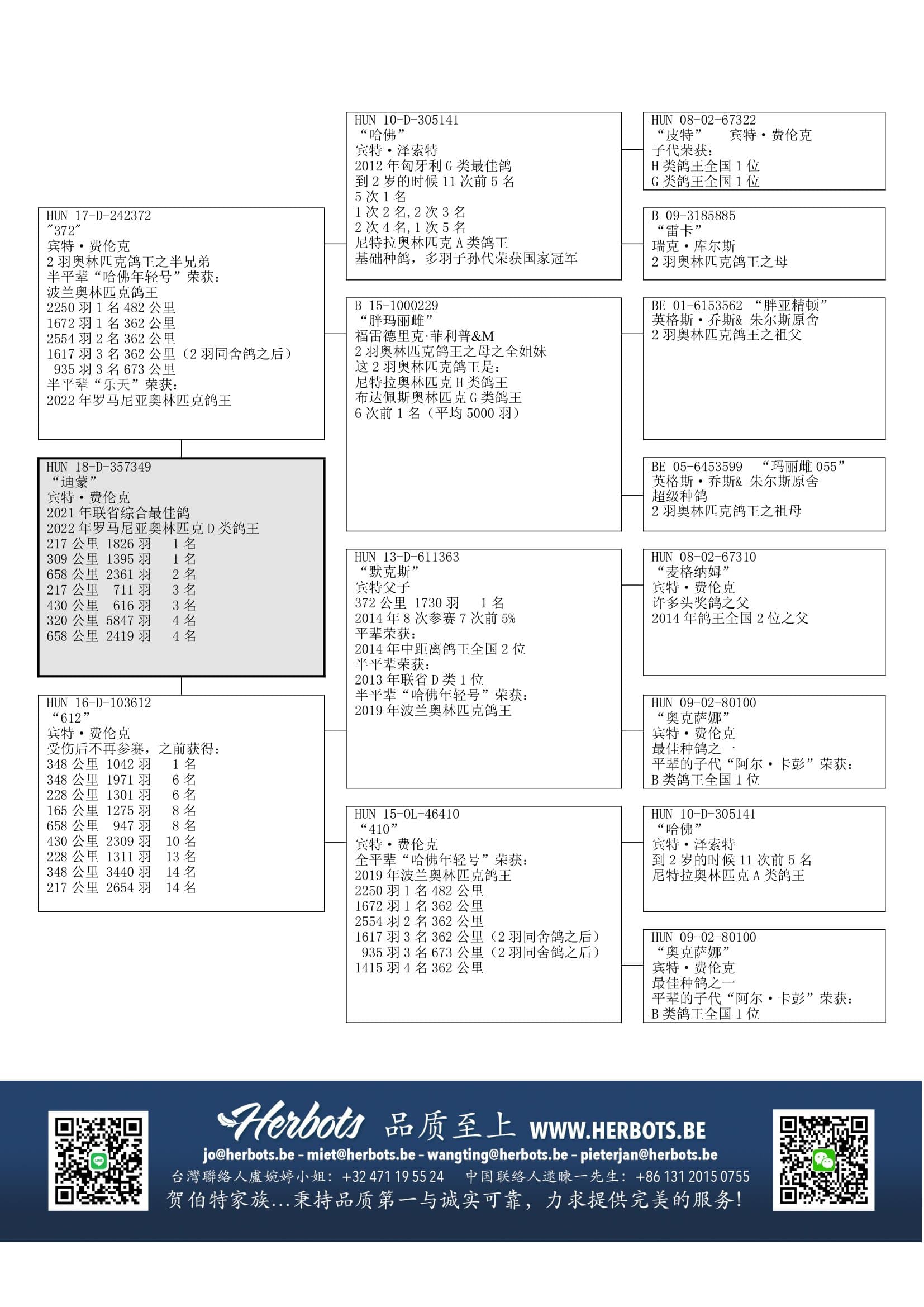 “默克斯” (荣获 1,730羽1名 – 全平辈荣获14年中距离鸽王全国2位) x “410” (全平辈“哈佛年轻号”荣获奥林匹克鸽王) 作出
