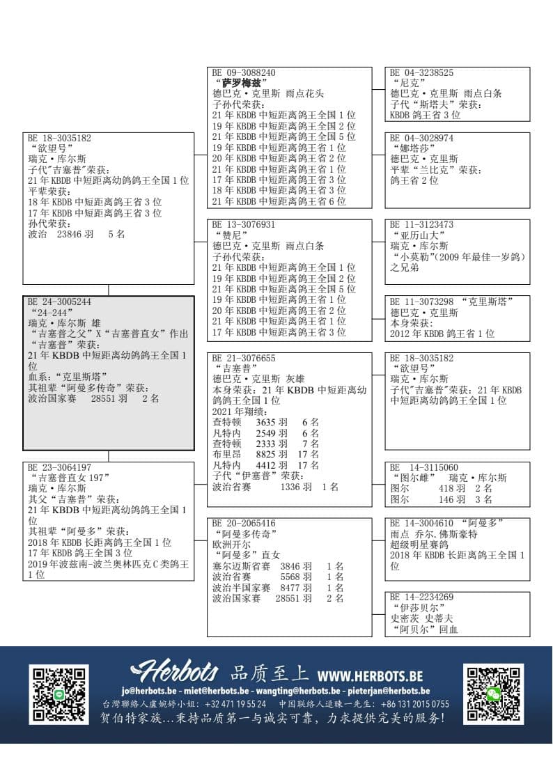 其祖辈顶级雌鸽“克里斯塔”的后代荣获:
