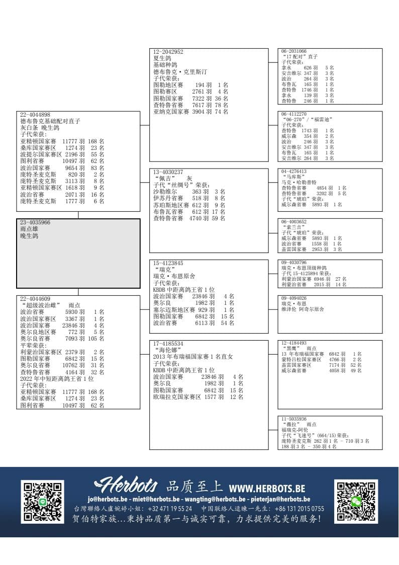 利蒙治国家赛区 2,379羽 2名– 图勒国家赛 6,842羽15名 -