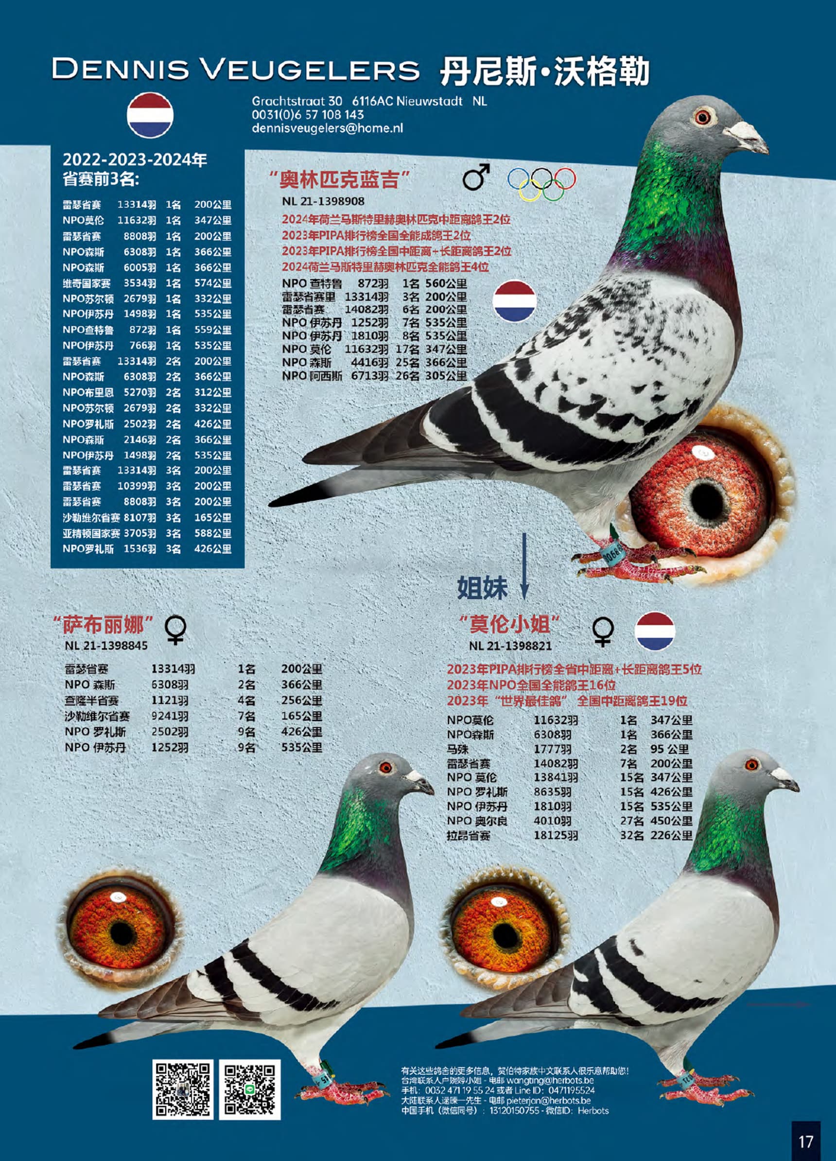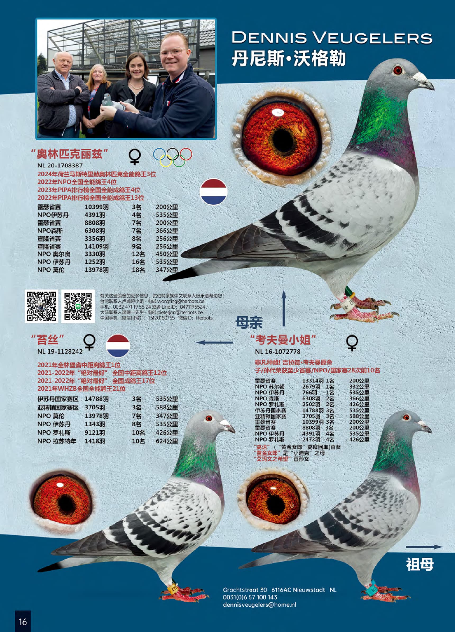荣获: 2024年荷兰奥林匹克中距离鸽王2位