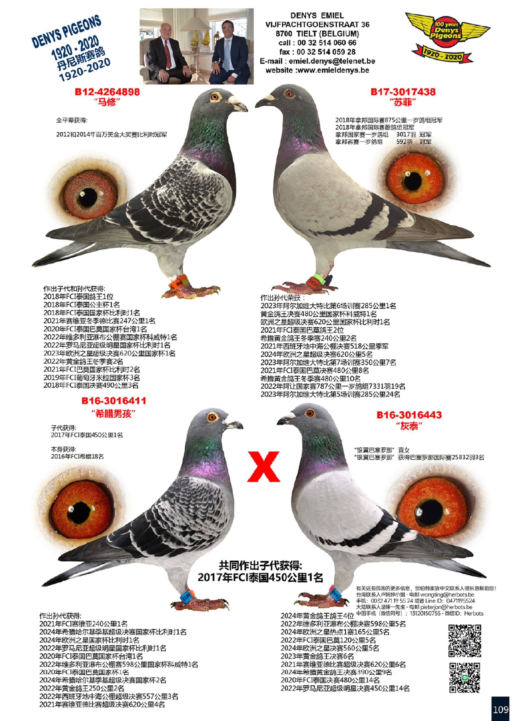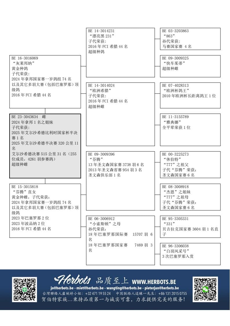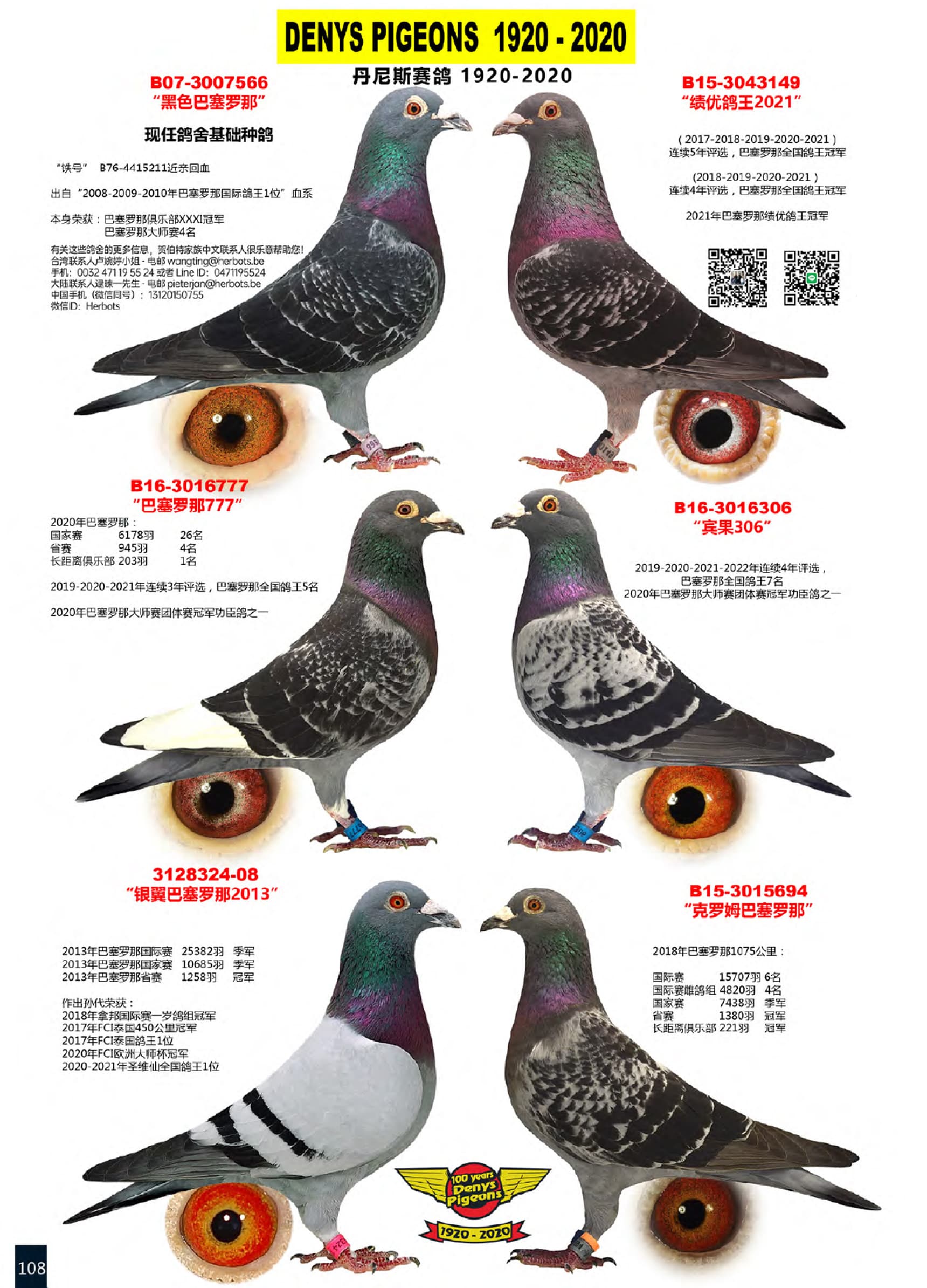 以上提到的冠军鸽以及多羽其它大赛(包括巴塞罗那赛)的高位翔绩鸽.