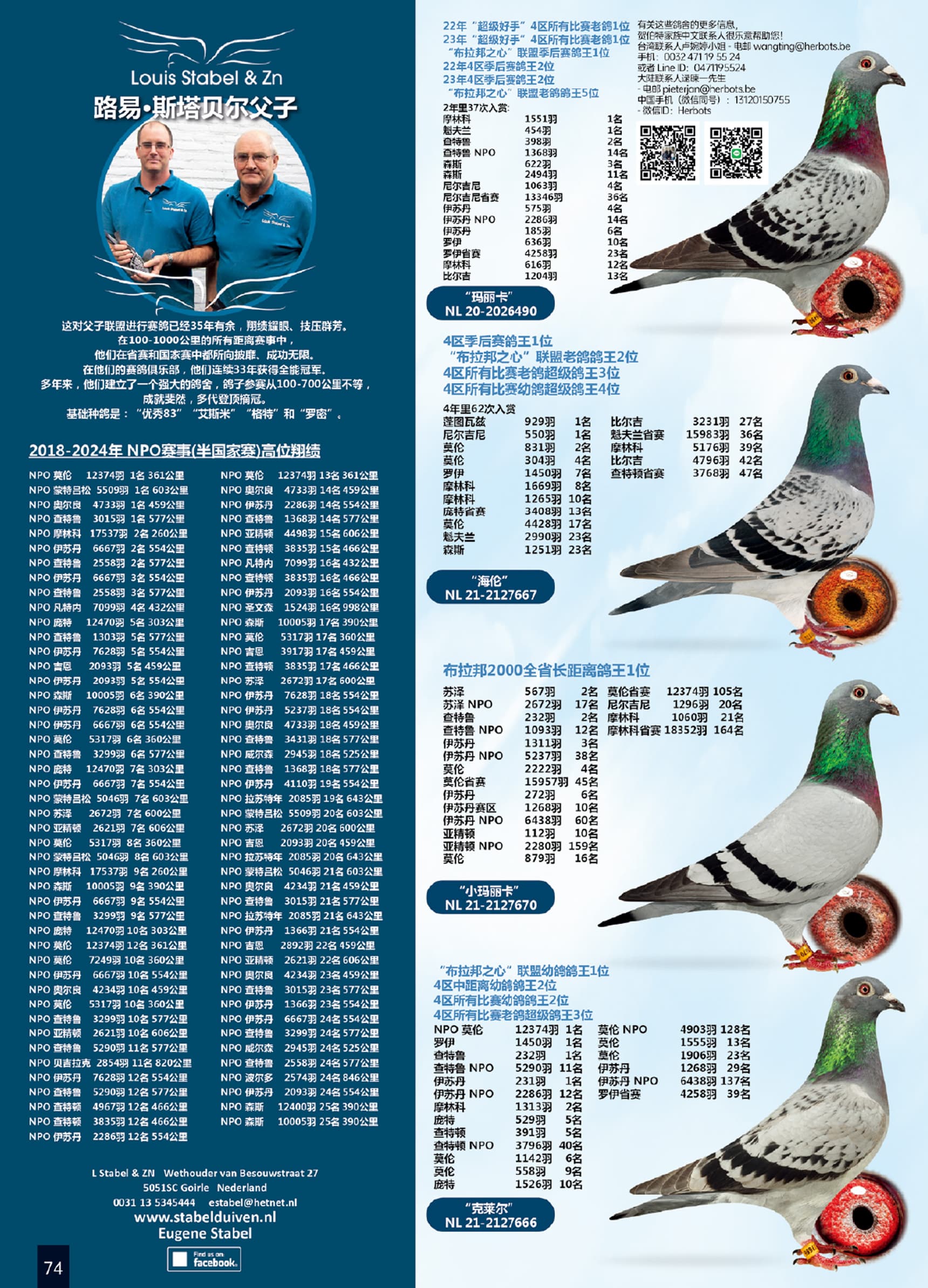 荣获: “布拉邦 2000”长距离鸽王省1位