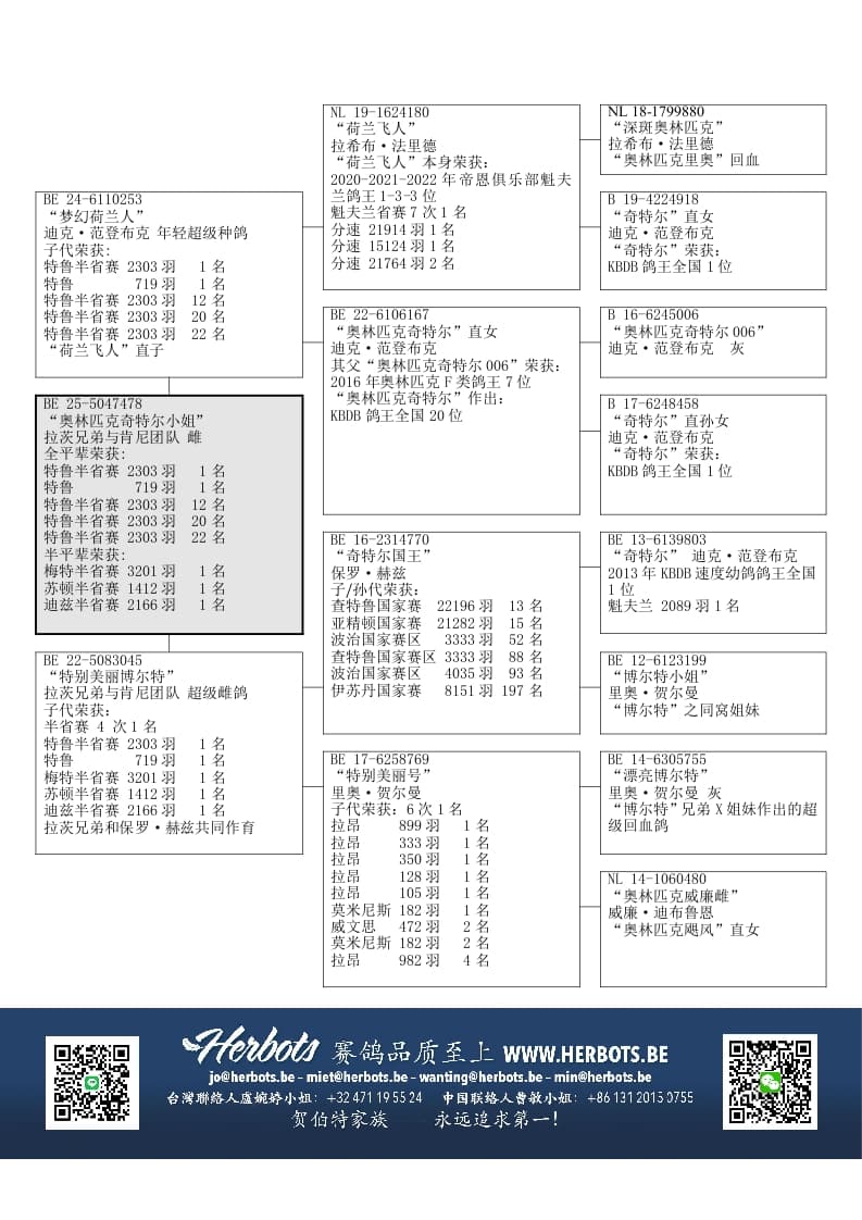 铭鸽“荷兰飞人”直子,“荷兰飞人”荣获:
