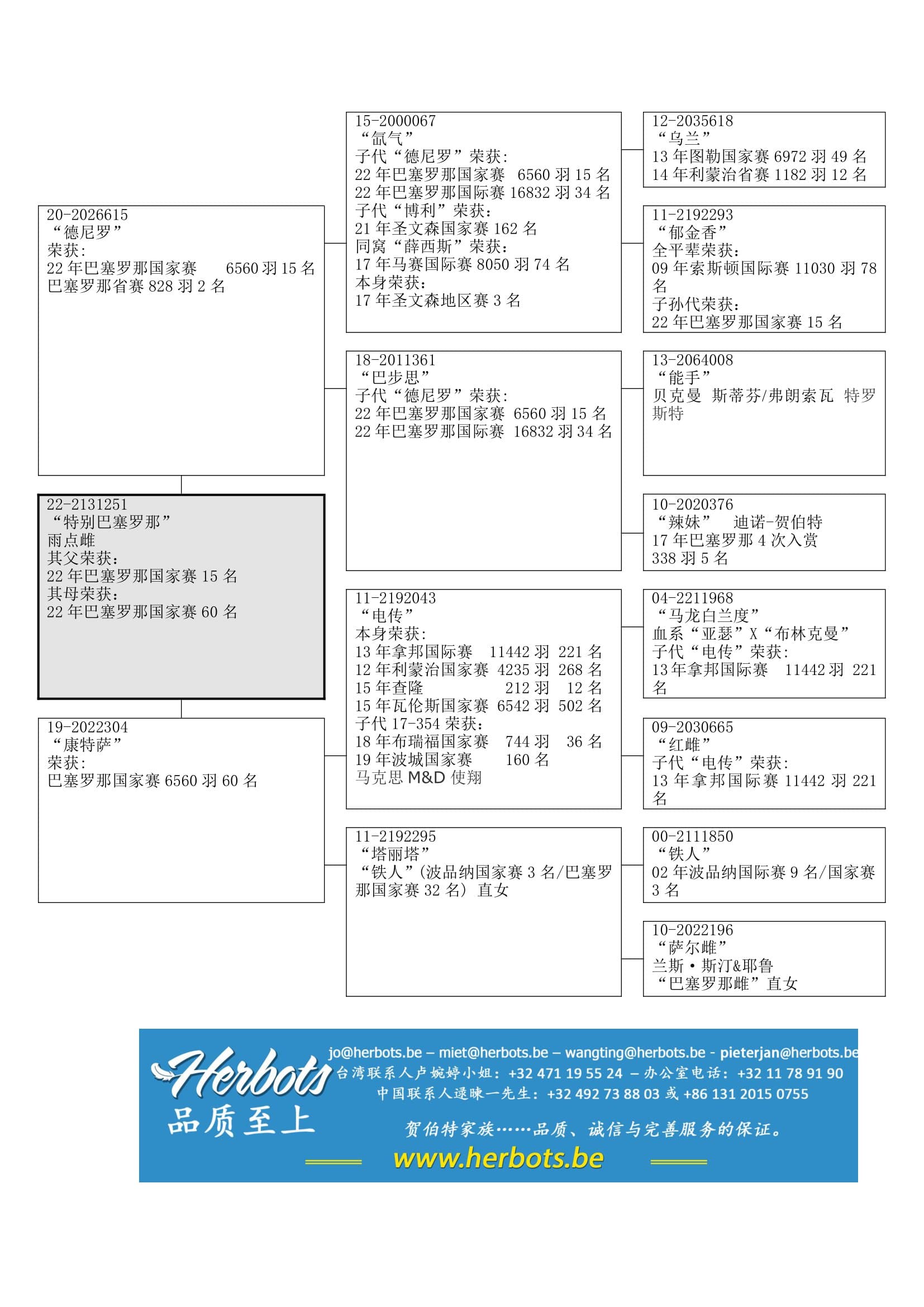查隆 212羽12名 - 拿邦国际赛 11,442羽221名 – 利蒙治国家赛 4,235羽268名 – 瓦伦斯国家赛 6,542羽502名