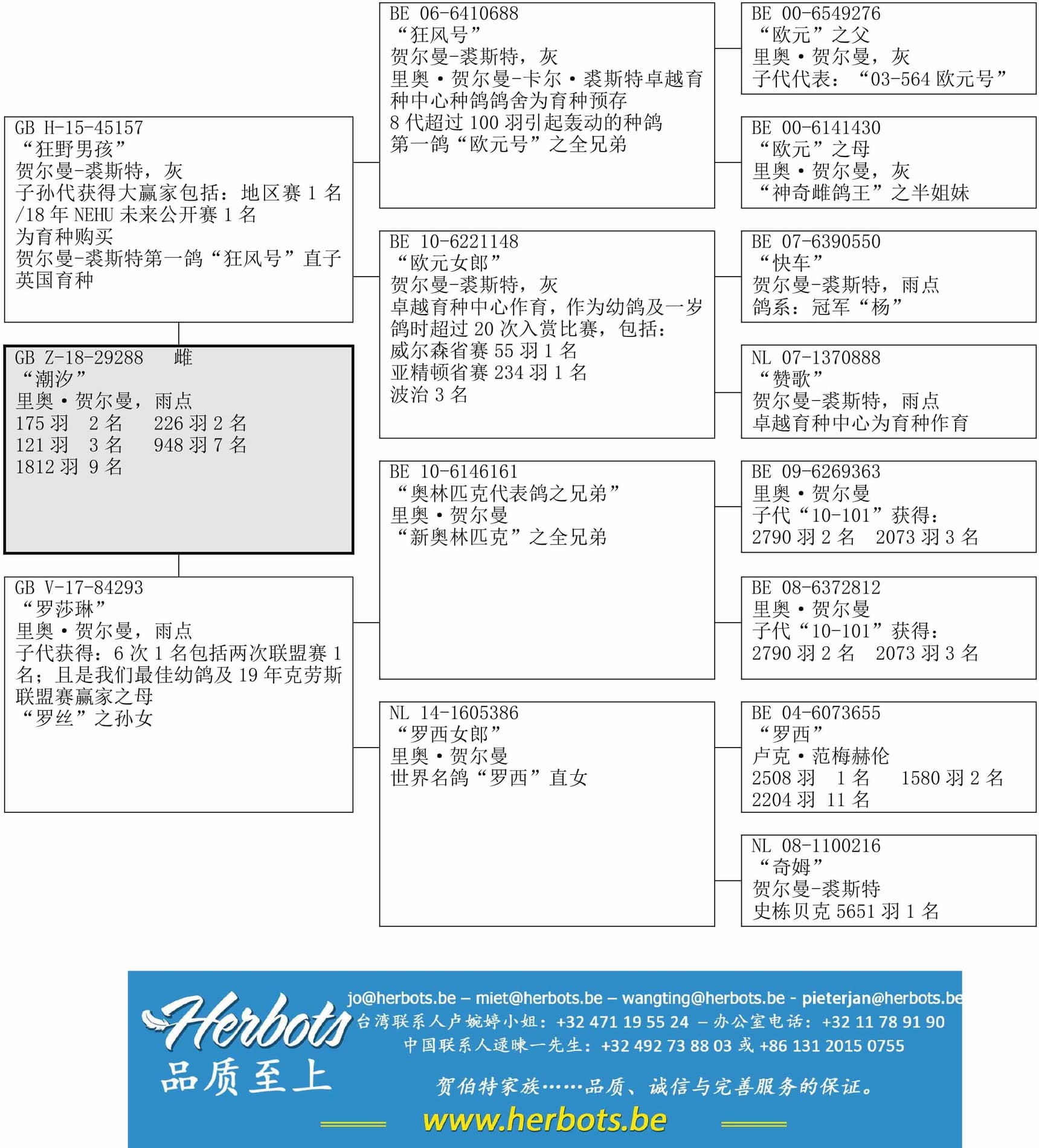 “狂风号”之子孙代获得:超过一百羽冠军(8 代)