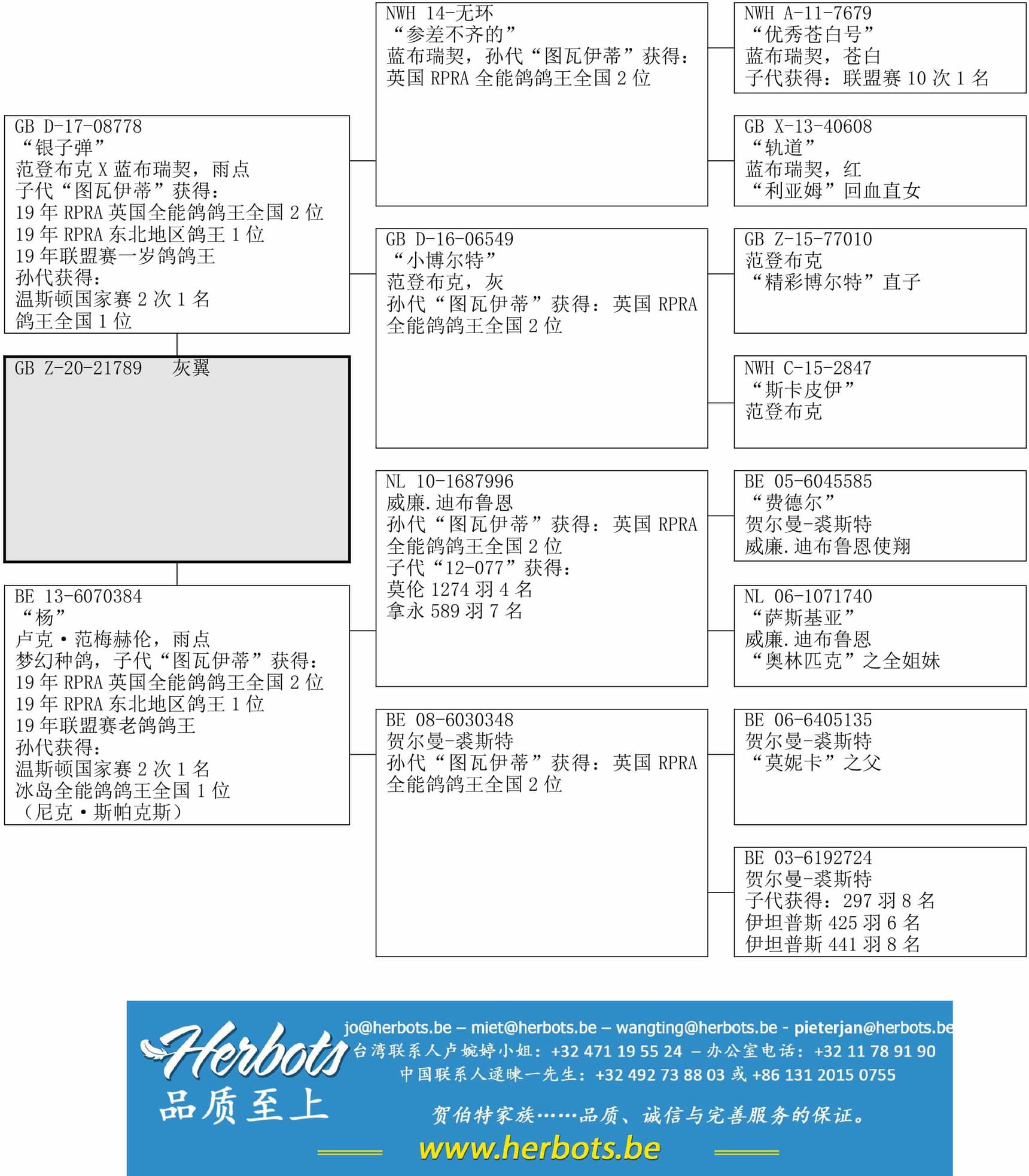 全平辈“图瓦伊蒂”获得:19 年RPRA 英国全能鸽鸽王全国2 位19 年RPRA 东北部地区鸽王1 位19 年林肯郡联盟赛/省赛鸽王1 位19 年RPRA 卓越精英赛1 位19 年RPRA 精英奖2 位